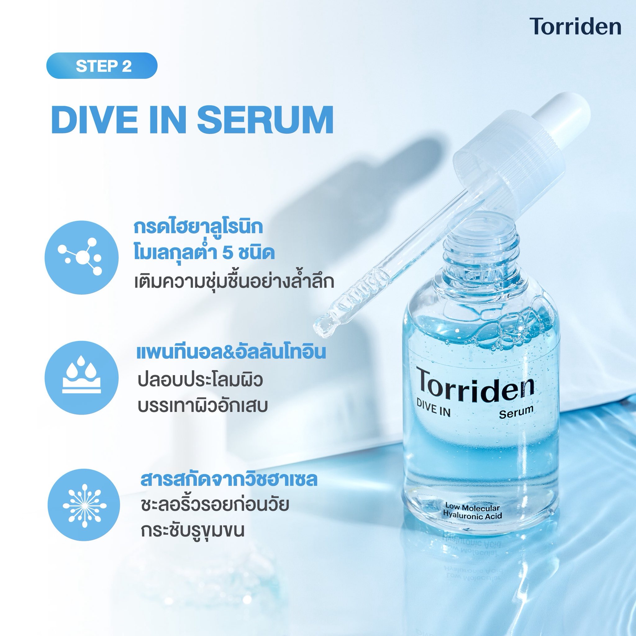 A thin thin strong serum that moisturizes the skin from the inside and nourishes it to shine healthy in just 3 seconds Combine five high medium and low molecular weight hyaluronic acid molecules with 48 hours of moisture from the inside to the outside after one use It is a perfect skin for dry dehydrated and oily skin Immediately improve skin moisture by 88.87 increase skin moisture by 10.09 retain 48 hours of moisture with one use Deep moisture increased by 14.94 after four weeks. Five types of low molecular weight hyaluronic acid of different sizes complement the skins deep moisture content for 48 hours after single use together with Panthenol and Allantoin It provides a strong healthy skin protection suitable for all skin conditions eventhough delicate skin is easily allergic.