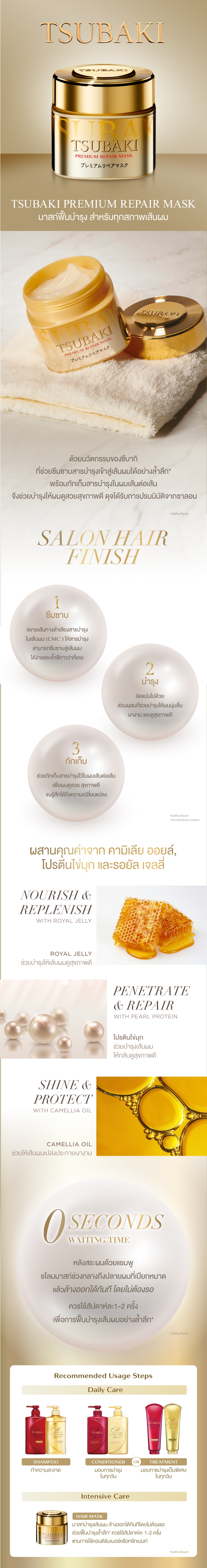 Tsubaki Premium Repair Mask with Tsubaki's latest prenetrating innovation gives your hair shine and beauty as the instant salon experience.