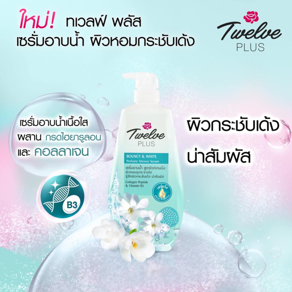 Bouncy and White Perfume Shower Serum, with Collagen Peptide & Vitamin B3 firming and brightening your skin with aromatic fragrance