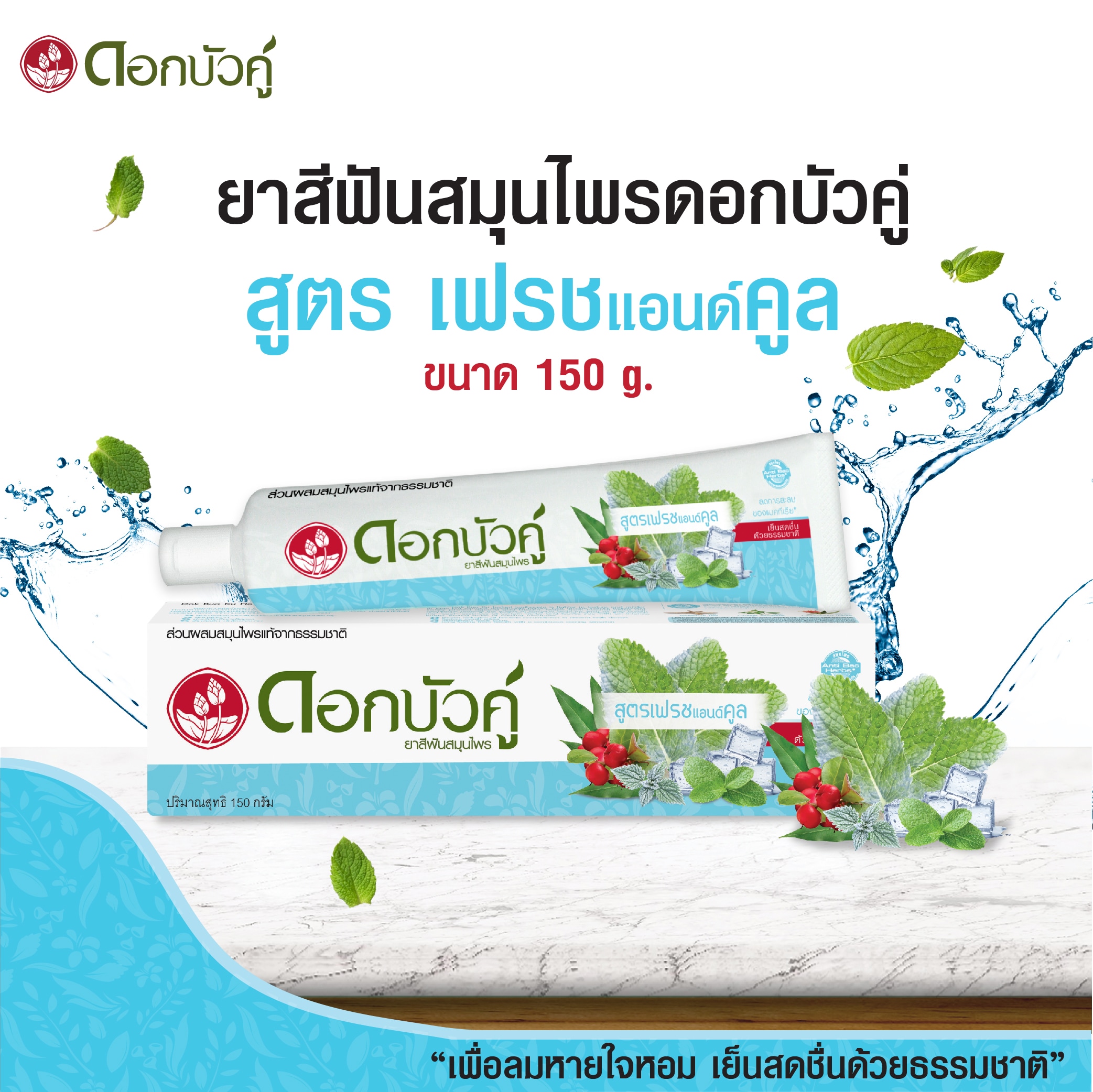 Twin Lotus Toothpaste Fresh&Cool 150 G. Fresh & Cool Herbal Toothpaste, made of genuine herbs, reduces the accumulation of bacteria that cause tooth decay and bad breath. Give you fresh breath and it is safe for oral health. With Cooling Herbs technology, feel your freshness and boost your confidence every single minute. Active Ingredient -Toothbrush Tree inhibit the growth of S.Mutans bacteria that cause tooth decay and plaque. Toothbrush Tree is anti-inflammatory. -Orange Jessamine inhibit the bacteria that cause bad breath. Relieve a toothache and prevent tooth decay. -Clinacanthus Nutans inhibit the bacteria that cause tooth decay and plaque. Heal the wound and reduce mouth inflammation to recover faster. -Winter Green Oil cool refreshing scent relieves a toothache. It is a disinfectant. - Eucalyptus Oil an essential oil makes you fresh and exhilarated. -Menthol refreshing cool aroma -Para Cress cure a toothache and relieve inflammation.
