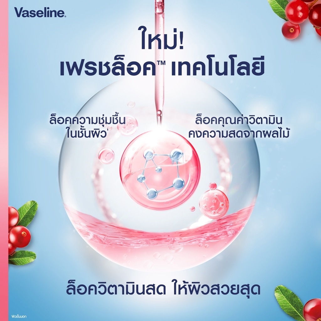 Vaseline Healthy Bright Superfood Freshlock Cranberry We believe in giving everyone healthy skin to live life without limits. So we created the Superfood Freshlock Cranberry for spotless & clear skin. Clinically formulated with 100% Natural Cranberry Essence extracted by Freshlock technology, which preserves the freshness and efficacy of natures nutrients and delivers skin solutions with 10x potency. Gives a healthy, radiant glow. Vitamin C corrects deeply-rooted inflammation & pigmentation for flawless, spotless and clear skin Double UV filters provide 8X protection against damaging UV rays Vaseline Jelly locks moisture deep within, restoring skin s natural balance. With a sweet and fresh Cranberry scent Our potent formula instantly absorbs into skin with 10X essence power that corrects deeply-rooted dark spots to give clear & bright skin. - Non-sticky formula - Clinically proven