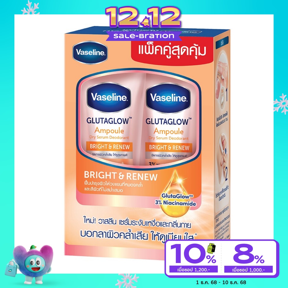 Vaseline Dry Serum GlutaGlow Ampoule Deodorant Bright Renew 45 Ml.Twin Pack