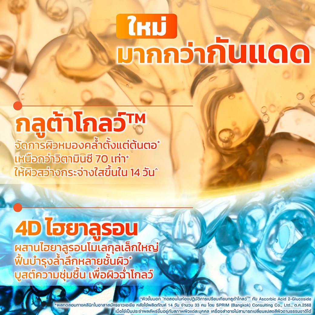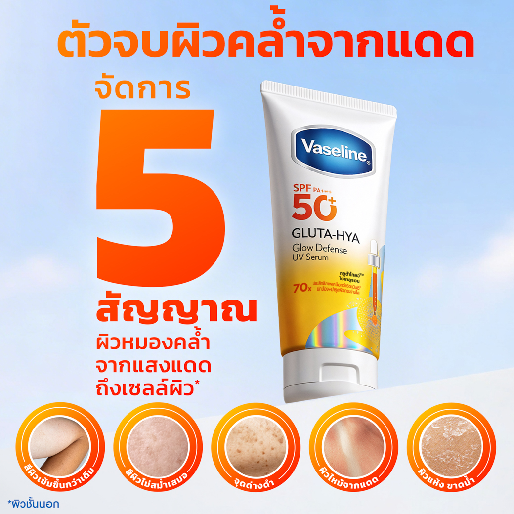 Sun protection that helps skin glow amp; brighter. Clinically proven to deliver radiant skin in just 2 weeks. Lightweight UV serum with a fast-absorbing, non-sticky texture. - SPF50+ PA++++ : hybrid sunscreen - chemical and physical, protects skin against UVA amp; UVB rays. - GlutaGlowTM technology : 70x more powerful than Vitamin C+, fights dullness at the root source. - 4D Hyaluron : combines hyaluron of varying molecular weights for multi-layer deep skin hydration. -Based on in vitro test Based on clinical test, with regular use. Results vary depending on the individual's skin condition. Cosmetic products cannot change one's natural skin tone.within epidermis within Vaseline Gluta-Hya Range.
