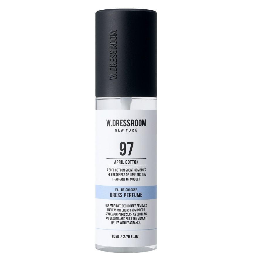 W.Dressroom Perfume 80ml. 97 Apirl Cotton This popular multi-purpose air freshener from Korea provides a refreshing, natural scent. It has antimicrobial properties, eliminating up to 99.9% of bacteria, removing odors, and leaving a pleasant fragrance every time it's used. Perfume offers more than just a pleasant scent; it can boost confidence and personality, create allure, improve mood, and reduce stress. The right fragrance can enhance your self-esteem, making you feel better and more confident, creating a captivating and approachable image, and making a great first impression.