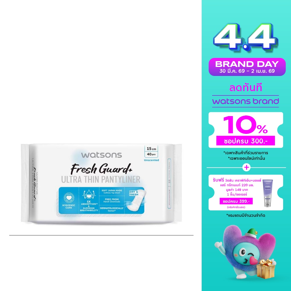 Watsons Fresh Guard+ Ultra Thin Pantyliner Unscented 15cm 40pcs.