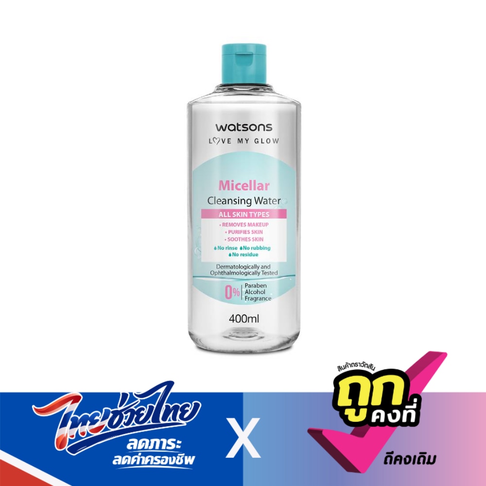 Watsons Micellar Cleansing Water 400 ml. Removes makeup with a single touch. With its micellar technology, it pulls away residue and excess oil like a magnet, without the need for rubbing that may irritate your skin.