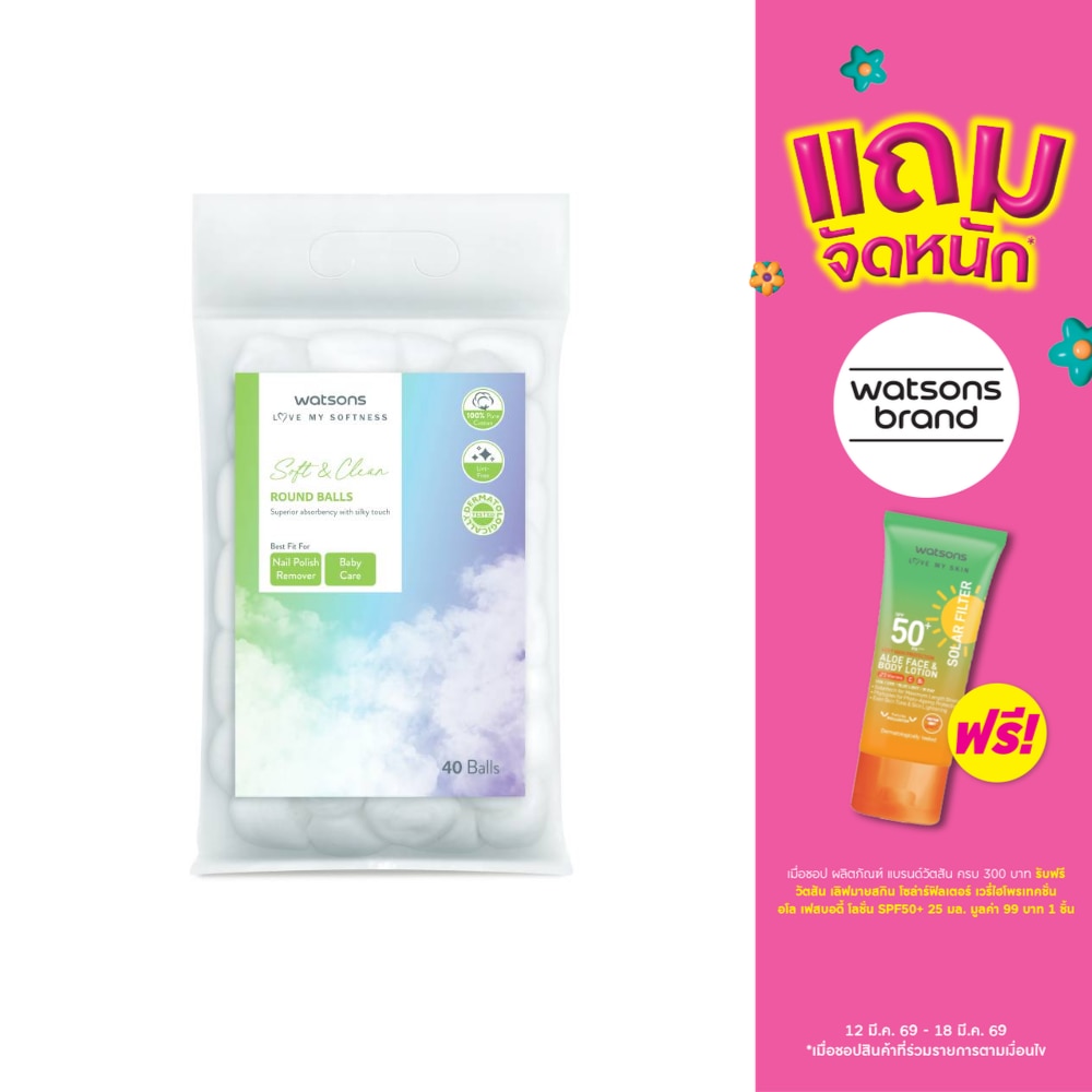 Watsons Round Balls 40s. is made from lint free premium quality cotton. They are soft on your skin and have superior absorbency, making them ideal for baby care, cosmetic and skincare needs.