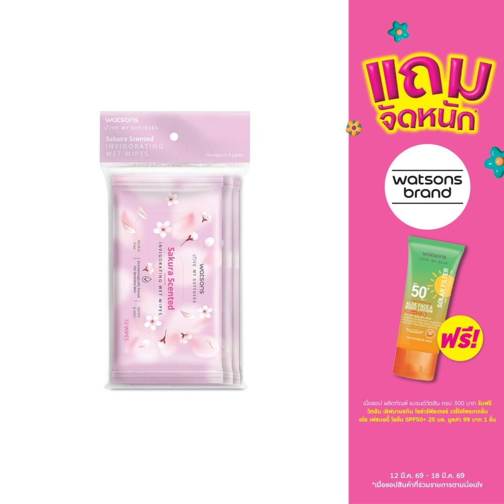 Watsons Sakura Scented Invigorating Wet Wipes 10 sheets x 3 packs.