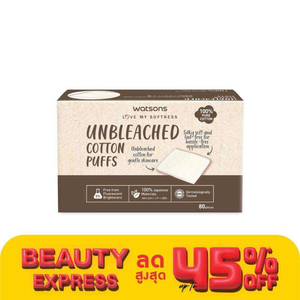 Watsons Unbleached Cotton Puffs is made of 100 pure cotton imported from Japan. Made with a non-chemical treatment process that is gentle on your skin. Silky soft puff with superior absorbency, ideal for all your cosmetic and skincare needs. Free from Fluorescent brighteners and safe to use. Ideal for applying cleanser and toner or removing makeup or nail polish. Quantiies 80 pieces. Size of each pad 50mm x 60mm. The specks that appear on the cotton puffs are naturally found in the cotton and are completely safe and harmless to your skin. Promote paper packaging made with paper from responsibly managed forests, or with recycled content. Additionally, the paper used in this packaging is certified by FSC.