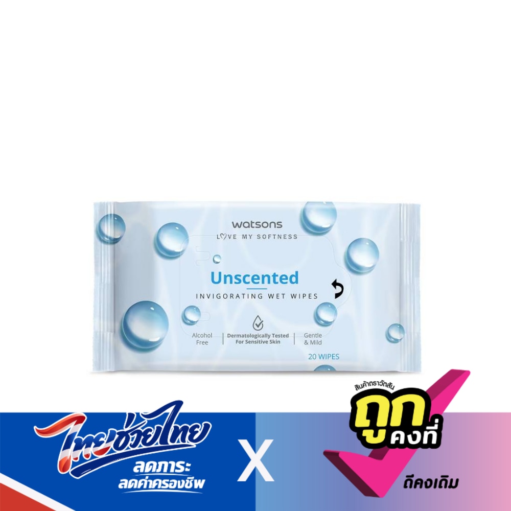 Watsons Unscented Invigorating Wet Wipes 20 sheets.