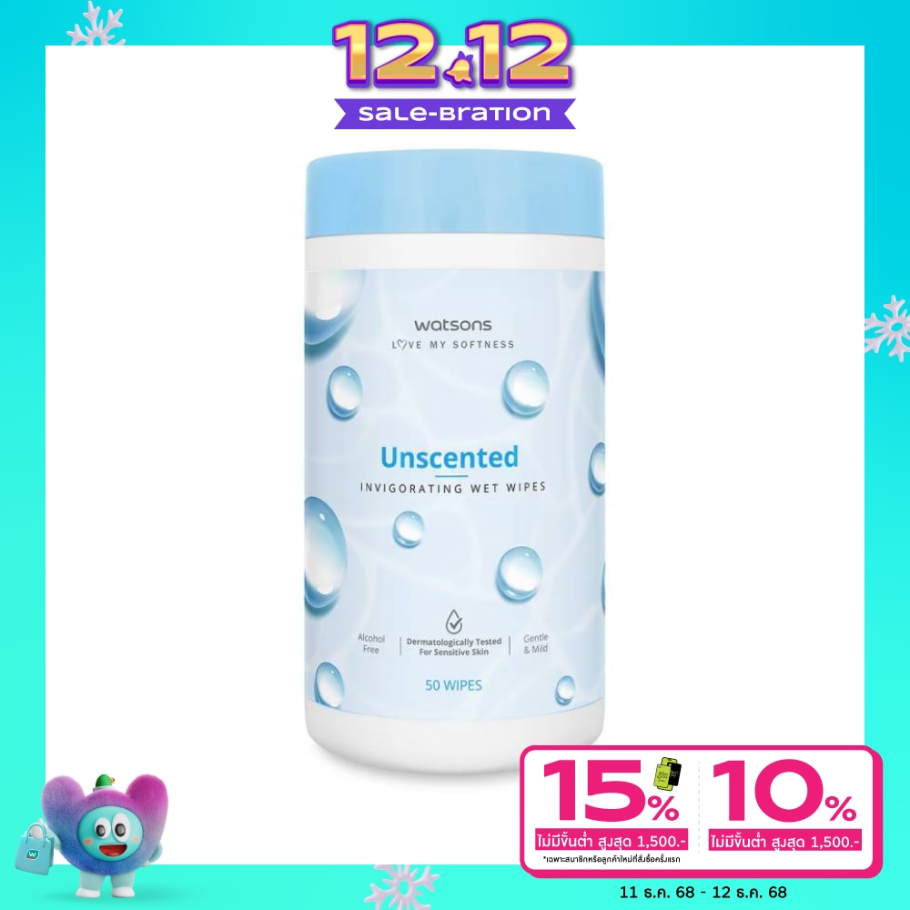 Watsons Unscented Invigorating Wet Wipes 50 sheets Canister.