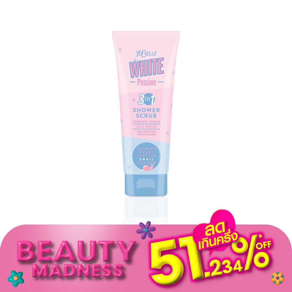 Yobelle White Passion Shower Scrub is the new innovation that combines the qualities of salt scrub, shower cream and whitening treatment. Finely textured micro sea salt, as one of the main ingredients of the shower scrub, helps exfoliate the skin and allows moisture to permeate the skin more easily, thus giving your skin a radiant glow right after use.