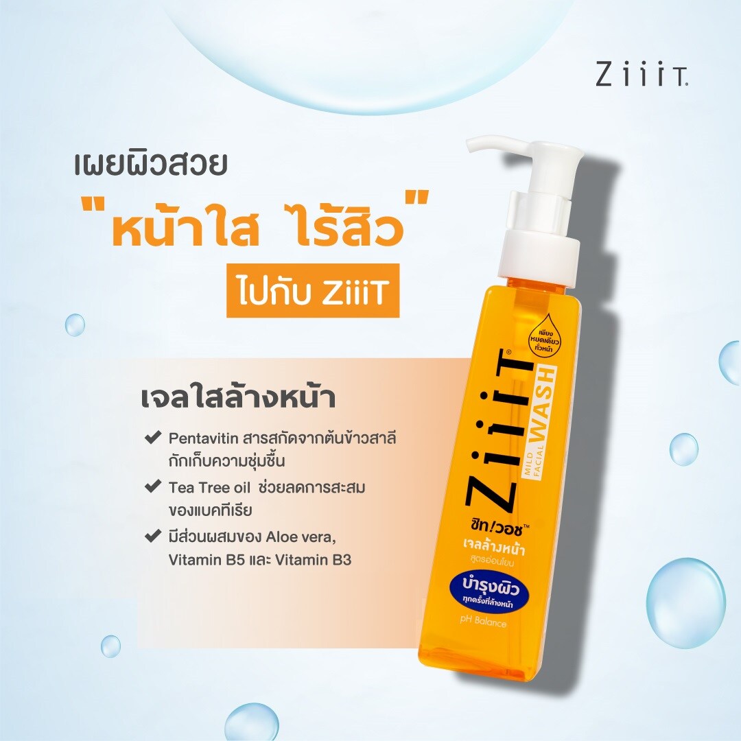 Drip Gel Ziiit Wash Mild Facial Wash pH Balance 2 drops into the palm. Apply gel gently over wet skin. Rinse with clean water