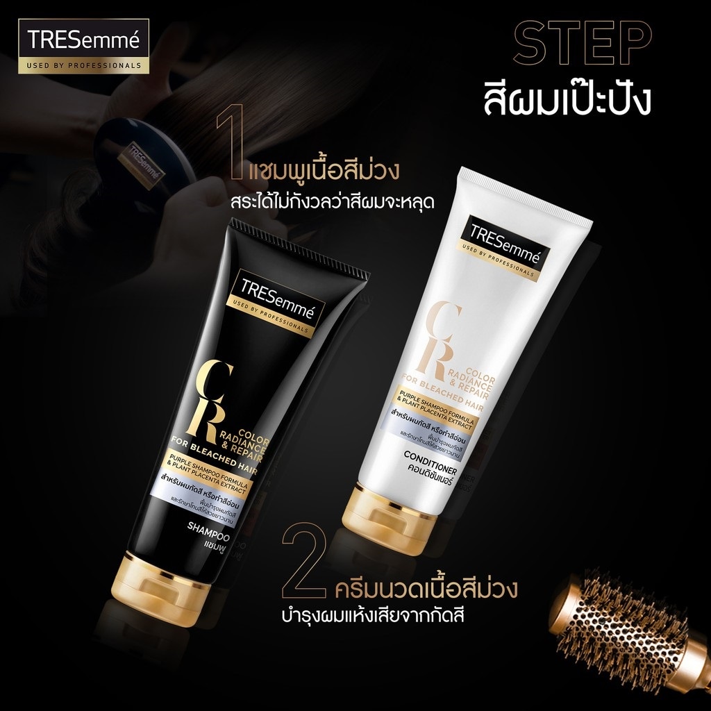เทรซ่าเม่ เคราติน สมูท คอนดิชันเนอร์ ครีมบำรุงผมผสานคุณค่าเคราติน ซึมซาบฟื้นบำรุงเส้นผมอย่างล้ำลึก ให้เส้นผมนุ่มลื่นเงางาม จัดทรงง่าย และลดผมชี้ฟูแชมพูสีม่วง สูตรพิเศษที่ผสานคุณค่าของสารสกัด Plant Placenta จากธรรมชาติ ใน เทรซาเม่ คัลเลอร์ เรเดียนซ์ รีแพร์ แชมพู สำหรับผมกัดสีหรือทำสีอ่อน ป้องกันเส้นผมเปลี่ยนเป็นสีเหลือง เพื่อรักษาโทนสีให้สวยยาวนาน และช่วยฟื้นบำรุงอย่างล้ำลึกให้กับเส้นผมที่เสียจากการกัดสี พร้อมสร้างเกราะป้องกันไม่ให้ผมเสียถึงแกนใน มอบผลลัพธ์ให้ผมสวยโดดเด่นเจิดจรัสในทุกวัน ครีมบำรุงผมสีม่วง สูตรพิเศษที่ผสานคุณค่าของสารสกัด Plant Placenta จากธรรมชาติ ใน เทรซาเม่ คัลเลอร์ เรเดียนซ์ รีแพร์ คอนดิชันเนอร์ สำหรับผมกัดสี หรือทำสีอ่อน ป้องกันเส้นผมเปลี่ยนเป็นสีเหลือง เพื่อรักษาโทนสีให้สวยยาวนาน และช่วยฟื้นบำรุงอย่างล้ำลึกให้กับเส้นผมที่เสียจากการกัดสี พร้อมสร้างเกราะป้องกันไม่ให้ผมเสียถึงแกนใน มอบผลลัพธ์ให้ผมสวยโดดเด่นเจิดจรัสในทุกวัน