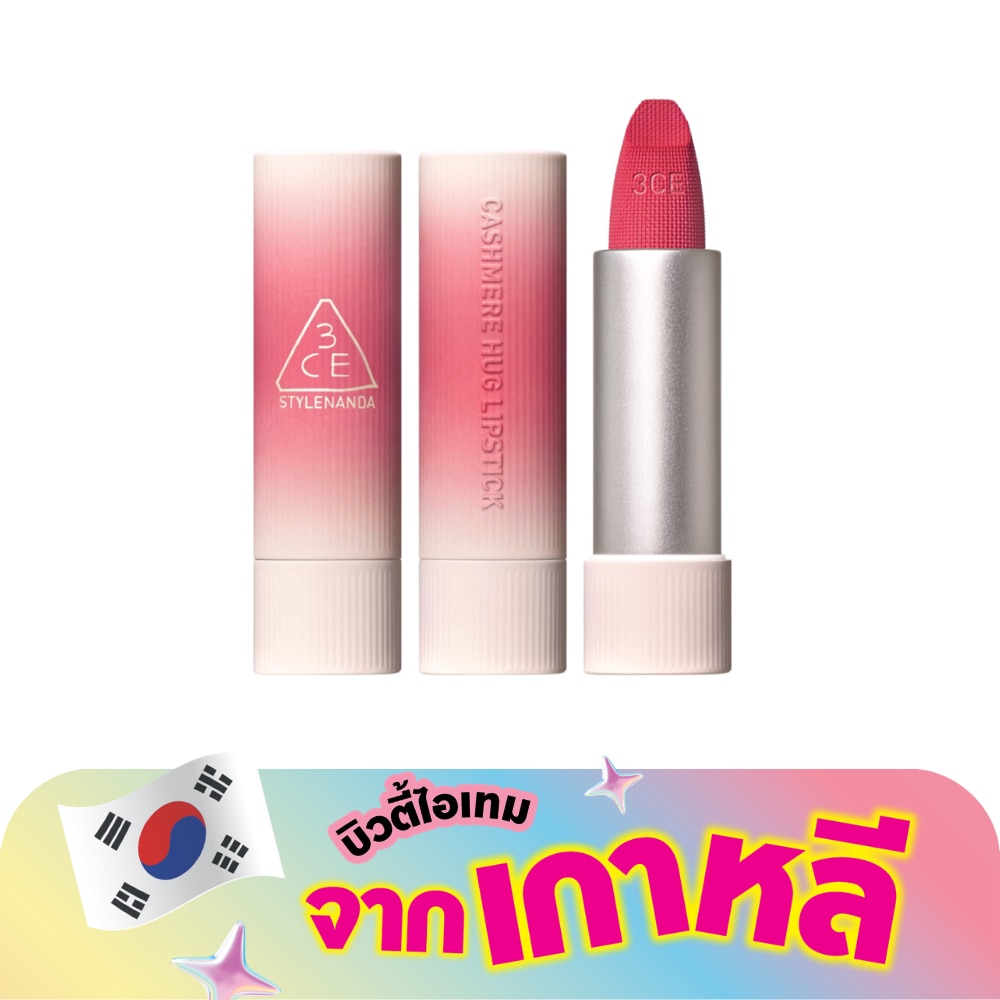 ลิปเเคชเมียร์ฮักห่อหุ้มริมฝีปากด้วยเนื้อแมทพิเศษที่เนียนนุ่มให้สีสันหรูหราสบายริมฝีปากตลอดวันเหมือนได้สัมผัสผ้าแคชเมียร์ลิปสติกมีดีไซน์เป็นเอกลักษณ์พร้อมโลโก้3CEเนื้อลิปเนียนลื่นเกลี่ยง่ายละลายบนริมฝีปากให้สัมผัสแมทนุ่มละมุนหรูหราอย่างมีสไตล์