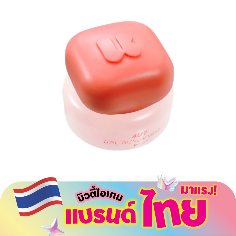 โฟร์ยูทู เกิร์ลเฟรนด์ส มูส ลิป คัพ ผลิตภัณฑ์ตกแต่งริมฝีปาก ลิปกระปุกเนื้อมูส เนื้อนุ่มฟู สามารถทาได้ทั้งแก้มและปาก เบลอปากฟุ้งละมุน ให้ลุคธรรมชาติ ติดทนตลอดวัน พร้อมปกป้อง และบำรุงด้วยอนุพันธ์ วิตามินอี และ โซเดียมไฮยาลูโรเนต ให้ริมฝีปากชุ่มชื้น แลดูอ่อนเยาว์ วิธีใช้ ใช้ปลายนิ้วหรือแปรง แต้มเนื้อลิปเล็กน้อย ทาบนริมฝีปาก หรือแก้ม แล้วเกลี่ยให้เนียน สามารถเพิ่มชั้นเพื่อ ให้สีเข้มขึ้นได้ตามต้องการ ส่วนประกอบ ดูที่บรรจุภัณฑ์ ข้อควรระวัง ใช้ให้ถูกจุดประสงค์ ห้ามรับประทาน ห้ามใช้สินค้า หลังวันหมดอายุ