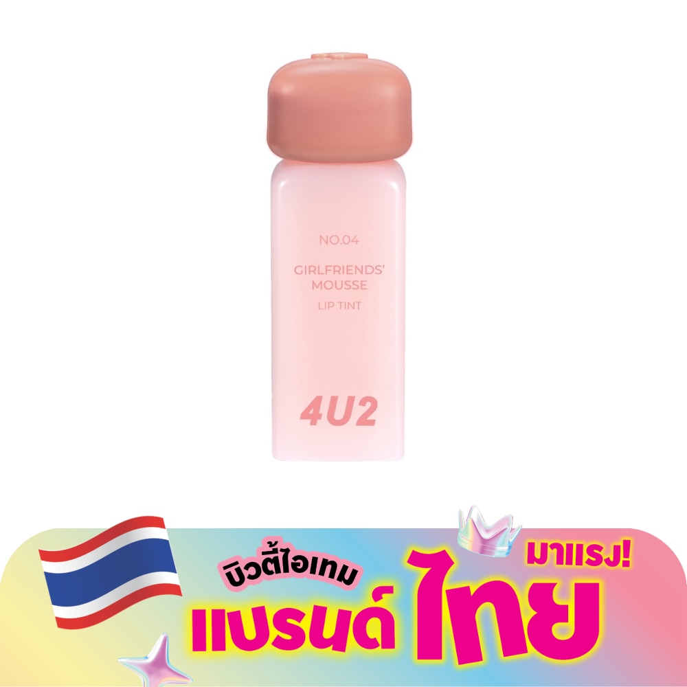 โฟร์ยูทู เกิร์ลเฟรนด์ส มูส ลิป ทินท์ ลิควิดลิปสติกเนื้อมูสแมท มอบสัมผัสเหมือนวิปครีม เนื้อเนียนนุ่ม เกลี่ยง่าย ล็อคสีปาก สวยชัด ติดทนนาน พร้อมช่วยเบลอร่องริมฝีปากให้เรียบเนียนด้วยเทคโนโลยี Mousse Blur Tint ผสานการบำรุงจาก Olive Oil Sweet Almond Oil และ Avocado Oil ที่ช่วยบำรุงริมฝีปากให้ชุ่มชื้นและเรียบเนียน วิธีใช้ ใช้ทาตกแต่งบริเวณริมฝีปาก ส่วนประกอบ ดูที่บรรจุภัณฑ์ ข้อควรระวัง ใช้ให้ถูกจุดประสงค์ หลีกเลี่ยงการใช้ในเด็ก ห้ามรับประทาน ระวังเข้าในตา ถ้าเข้าในตาให้ ล้างออกด้วยน้ำสะอาด หรือน้ำอุ่น