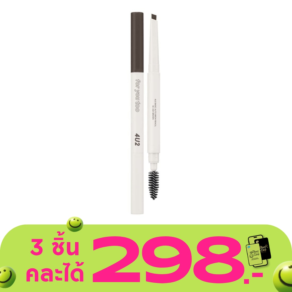 โฟร์ยูทู เบสิค ออโต้ โบร์ว เพนเซิล ผลิตภัณฑ์ตกแต่งคิ้ว ดินสอเขียนคิ้วออโต้ ใช้ง่าย ไม่ต้องเหลา จากโฟร์ยูทู เขียนง่าย กันน้ำ กันเหงื่อ ติดทนยาวนาน ช่วยให้คุณเขียนคิ้วได้สวยอย่างเป็นธรรมชาติ ดินสอเขียนคิ้วออโต้มาพร้อมแปรงปัดช่วยจัดทรงคิ้วให้สวยยิ่งขึ้น วิธีใช้ ใช้เขียนตกแต่งคิ้ว โฟร์ยูทู เบสิค ออโต้ โบร์ว เพนเซิล ผลิตภัณฑ์ตกแต่งคิ้ว มีทั้งหมด 3 เฉดสี โฟร์ยูทู เบสิค ออโต้ โบร์ว เพนเซิล 01 เนเชอรัล บราวน์, โฟร์ยูทู เบสิค ออโต้ โบร์ว เพนเซิล 02 ดาร์ค บราวน์, โฟร์ยูทู เบสิค ออโต้ โบร์ว เพนเซิล 03 แอช บราวน์