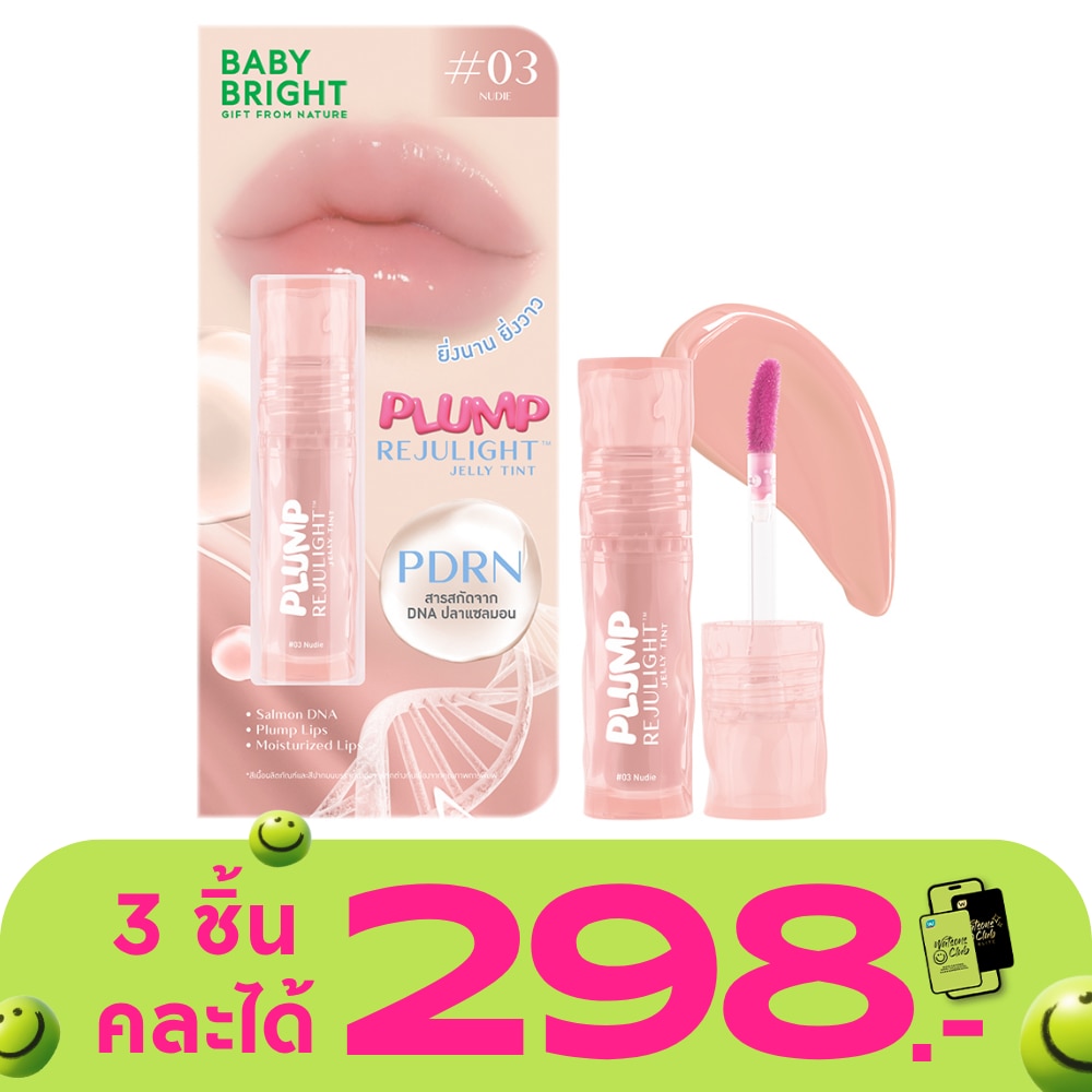 เติมความอิ่มฟูให้ริมฝีปากดูแวววาวราวกระจกด้วย เบบี้ไบร์ท พลัมพ์รีจูไลท์เจลลี่ทินท์ ลิปกระจกเนื้อเจล สัมผัสนุ่มชุ่มชื้น บางเบาไม่หนักปาก สีสวยชัด ยิ่งทาไว้นาน ยิ่งฉ่ำวาว พร้อมช่วยฟื้นบำรุงริมฝีปากให้ดูอวบอิ่ม เด้งฟูดุจไร้ร่องปาก ด้วยนวัตกรรมการฉีดผิวหน้าวาวใสจากประเทศเกาหลีที่มีสารสกัด SODIUM DNA จากปลาแซลมอน สู่ผลิตภัณฑ์ลิปทินท์พลัมพ์รีจูไลท์เนื้อฉ่ำวาว ช่วยเสริมสร้างคอลลาเจน พร้อมเติมความชุ่มชื้นและความยืดหยุ่นให้แก่ริมฝีปาก ลดเลือนริ้วรอยร่องปากให้ดูตื้นขึ้น ทั้งยังมีสารสกัดจากเห็ดหลินจือ ช่วยปลอบประโลมริมฝีปาก ผสานสารสกัดจากบัวหิมะ ช่วยลดเลือนริ้วรอยร่องปาก ช่วยให้ริมฝีปากแลดูอ่อนเยาว์ สารสกัดจากโสม ช่วยลดเลือนริ้วรอยร่องปาก และช่วยเสริมสร้างคอลลาเจน ช่วยให้ริมฝีปากอวบอิ่ม ทั้งสารสกัดจากน้ำมันเมล็ดโบตั๋น ช่วยลดเลือนริ้วรอยร่องปาก และช่วยเพิ่มความชุ่มชื้นให้ริมฝีปาก เติมสีสันให้ริมฝีปากดูสวย อิ่มฟู ฉ่ำวาว แลดูสุขภาพดีอย่างเป็นธรรมชาติ ปราศจากพาราเบน