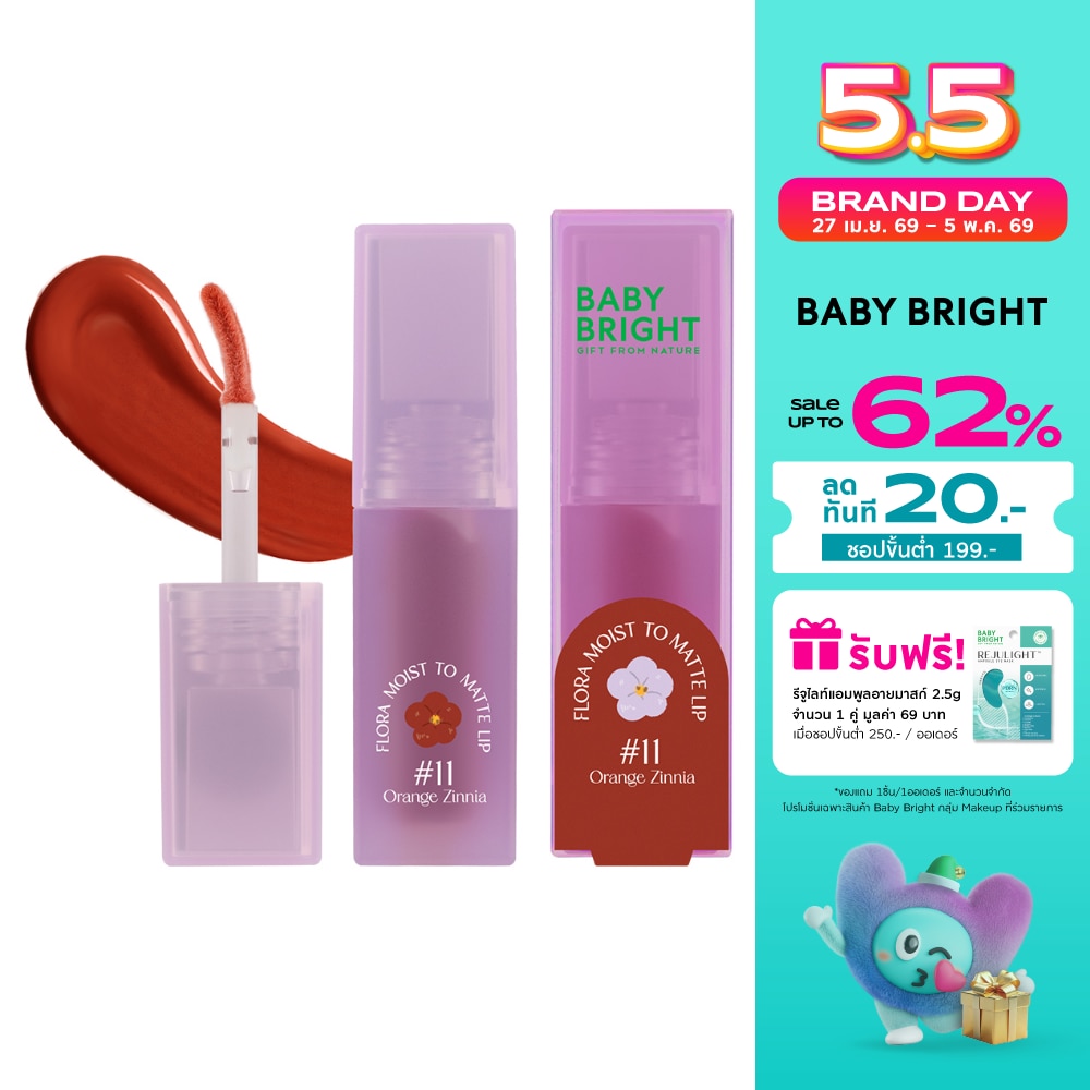 ร่วมสนุกไปกับลิปเนื้อสัมผัสใหม่จาก Baby Bright Flora Moist to Matte Lip ลิปเนื้อมอยส์และแมทท์ในแท่งเดียว ให้สัมผัสแรกฉ่ำวาว เมื่อเบลนด์แล้วจะได้ฟินิชลุคเป็นลิปแมทท์เนื้อกำมะหยี่ เนียนนุ่มดุจใยไหม เกลี่ยง่าย ไม่หนักปาก สีชัด ติดทน เสริมคุณค่าสูตรวีแกน 100เปอร์เซ็นต์ อุดมไปด้วยสารสกัดจากใบไฮเดรนเยีย น้ำมันเมล็ดองุ่นสารสกัดจากดอกคาเมเลียและวิตามินอี มีสารแอนตี้ออกซิแดนท์ ช่วยปกป้องริมฝีปากจากมลภาวะ ลดเลือนริ้วรอยร่องปาก พร้อมกักเก็บความชุ่มชื้นและความยืดหยุ่นให้ริมฝีปากดูเรียบเนียน อ่อนนุ่ม สุขภาพดี มีเสน่ห์อย่างน่าหลงใหล ปราศจากแอลกอฮอล์และพาราเบน
