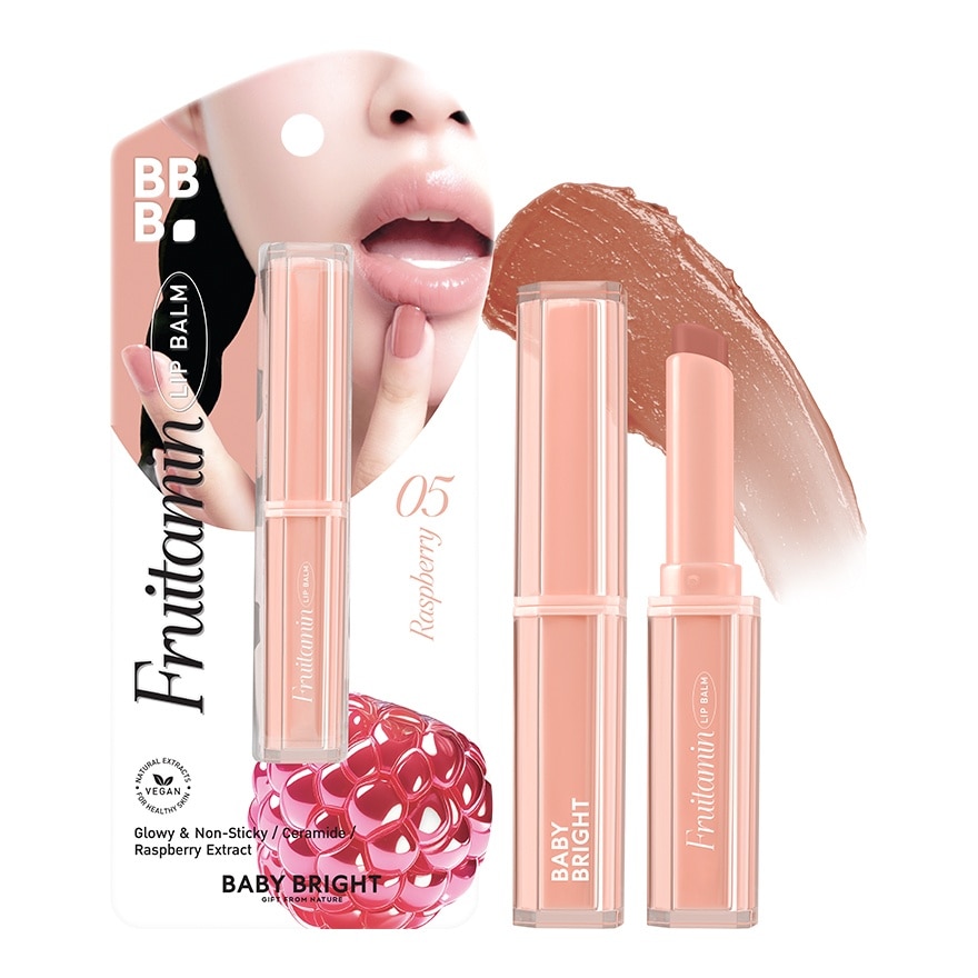 เติมความสดใสและบำรุงริมฝีปากด้วยเบบี้ไบร์ท ฟรุตตามินลิปบาล์ม ลิปบาล์มเนื้อเนียนนุ่ม ช่วยมอบความรู้สึกเบาสบาย ให้ริมฝีปากอวบอิ่ม เรียบเนียน หอมกลิ่นผลไม้นานาชนิด เสริมคุณค่าสารสกัดวีแกน 100 ด้วยคุณประโยชน์จากเชียบัตเตอร์ (Butyrospermum Parkii (Shea) Butter) และน้ำมันโจโจ้บา (Simmondsia Chinensis (Jojoba) Seed Oil) ช่วยเติมความชุ่มชื้น กักเก็บน้ำให้ริมฝีปากเนียนนุ่ม ไม่แห้งตึง ผสานสารสกัดจากวิตามินอี (Tocopheryl Acetate) ที่มีสารแอนตี้ออกซิแดนท์ บำรุงริมฝีปากที่หมองคล้ำให้กลับมาสดใส และเซราไมด์ (Ceramide) ช่วยฟื้นบำรุงริมฝีปากที่แห้งแตก ลอกเป็นขุย ให้กลับมาชุ่มชื้นเรียบเนียน ทั้งยังมีน้ำมันมะกอก (Olea Europaea (Olive) Fruit Oil) ที่ช่วยลดเลือนริ้วรอยร่องปาก และน้ำมันละหุ่ง (Ricinus communis (Castor) Seed Oil) ช่วยบำรุงให้ริมฝีปากชุ่มชื้น เผยสีธรรมชาติของริมฝีปากและเพิ่มความสดใสดูสุขภาพดีอย่างน่าสัมผัส ปราศจากพาราเบนและแอลกอฮอล์