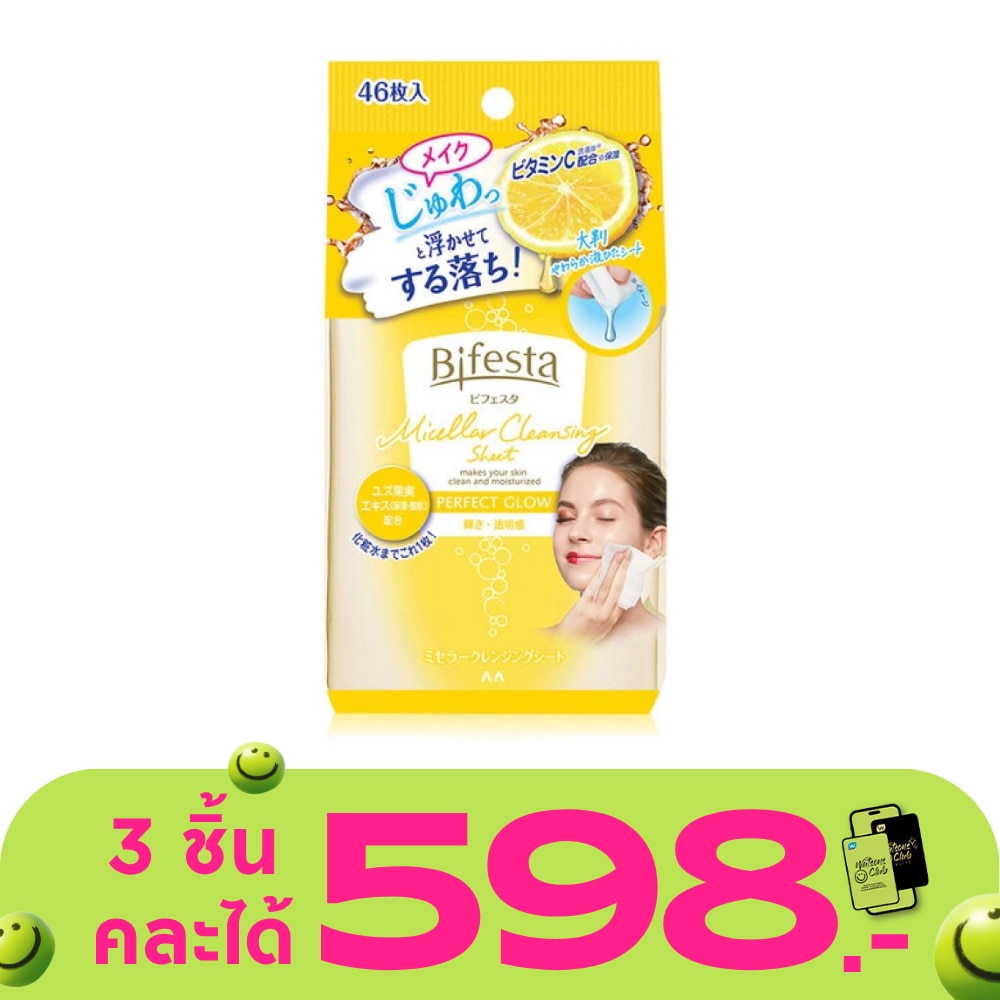 แผ่นเช็ดเครื่องสำอาง บิเฟสต้า เคลนซิ่ง ชีท เพอร์เฟค โกลว์ 46 แผ่น