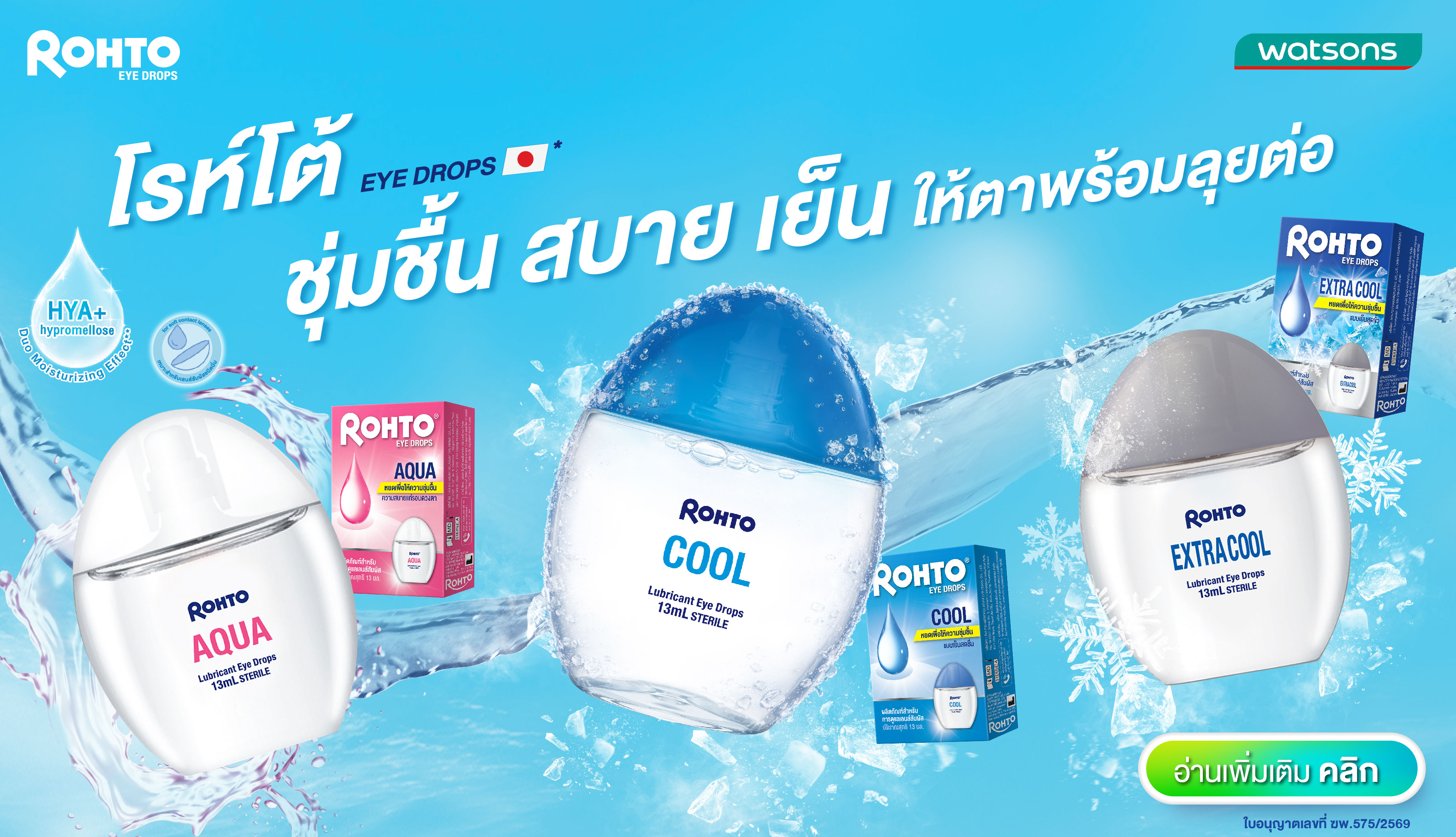 สามารถเลือกซื้อ Rohto Eye Drops ได้ที่ร้าน Watsons ทุกสาขา หรือช่องทางออนไลน์ของ Watsons