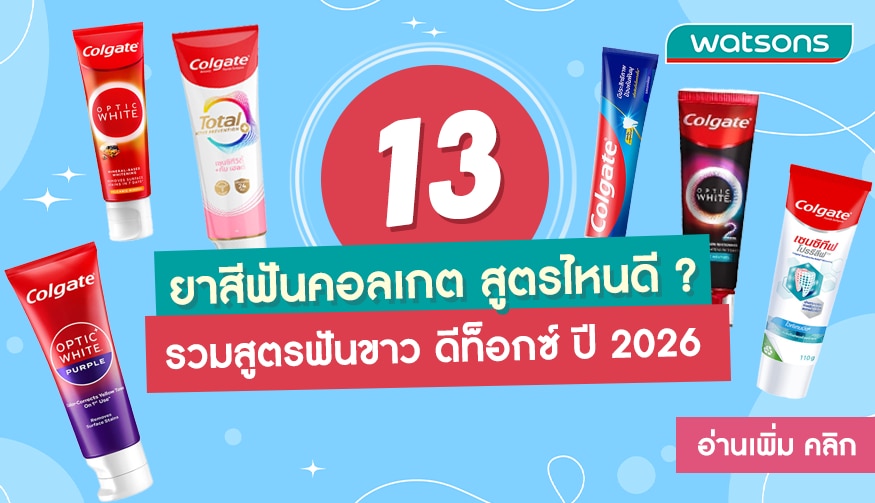 คาดว่าหลาย ๆ คนคงจะรู้จักกับ “ยาสีฟันคอลเกต” ยาสีฟันที่อยู่คู่กันคนไทยมาทุกยุค แถมยังมีประวัติยาวนานตั้งแต่ปี 1873 ขึ้นชื่อเรื่องการป้องกันฟันผุ เสริมเคลือบฟัน และลดคราบพลัค ด้วยส่วนผสมของฟลูออไรด์และนวัตกรรมใหม่ ๆ จนถึงในปัจจุบัน ยาสีฟันคอลเกตได้พัฒนายาสีฟันออกมาหลากหลายสูตร ให้เลือกตรงกับปัญหาช่องปากและการดูแลรักษาฟันของแต่ละคน วัตสันขนเอายาสีฟันคอนเกตหลาย ๆ สูตรมาบอกต่อ มีสูตรไหนดี ตอบโจทย์ฟันของเรา ลองตามไปดูกันเลย