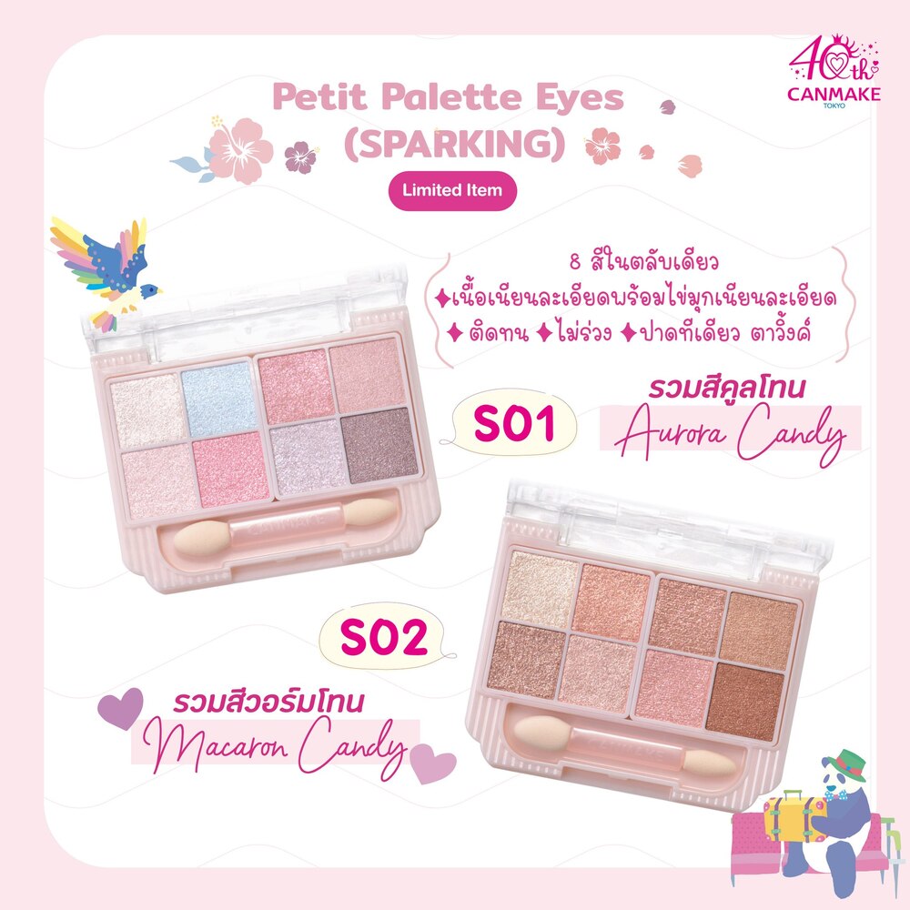 Canmake Petit Palette Eyes Sparkling Type พาเลทอายแชโดว์กลิตเตอร์ 8 สีนี้มีขนาดกระทัดรัดและพกพาสะดวก เหมาะสำหรับพกพาไปได้ทุกที่ อัดแน่นไปด้วยผงไข่มุกเนื้อละเอียดที่ช่วยเพิ่มประกายแวววาวให้กับดวงตาพร้อมทั้งยังให้ความชุ่มชื้นแก่ดวงตาอีกด้วย เนื้อสัมผัสเนียนละเอียดเกลี่ยง่ายและสามารถผสมและจับคู่ให้เข้ากันอย่างลงตัว จึงเหมาะกับการแต่งหน้าหลายสไตล์ ไม่ว่าคุณจะชอบโทนสีเย็นหรือโทนสีอุ่น พาเลทอเนกประสงค์นี้ได้รับการออกแบบมาเพื่อยกระดับการแต่งตาด้วยผลลัพธ์การแต่งตาที่เปล่งประกายระยิบระยับ พาเลตต์กลิตเตอร์อายแชโดว์ 8 สี ขนาดกระทัดรัดพกพาสะดวก อัดแน่นด้วยผงไข่มุกเนื้อเนียนละเอียด เติมสีสันให้ดวงตาเป็นประกายฉ่ำน้ำ แต่งง่าย Mix amp; Match เข้าถึงได้ทุกลุคการแต่งหน้าทั้งคูลโทนและวอร์มโทน