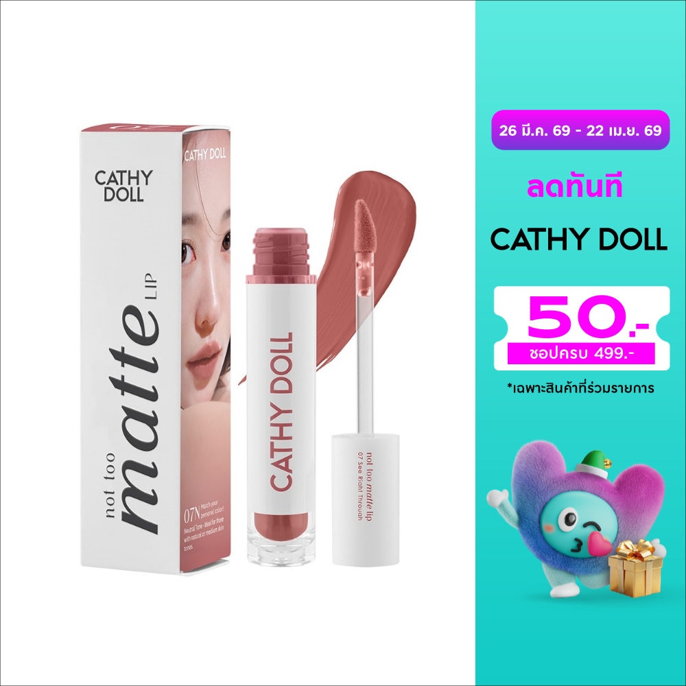 เคที่ดอลล์ นอตทูแมทท์ลิป ลิปเนื้อกึ่งแมทท์ให้ฟินิชริมฝีปากแมทท์พร้อมคงความชุ่มชื้น ไม่ทำให้ปากแห้ง มอบสัมผัสริมฝีปากที่เนียนลื่น เบาสบาย เนื้อลิปสีพิกเมนต์แน่นปาดเดียวสีชัด เบลอร่องริมฝีปากให้ดูอวบอิ่ม พร้อมเพิ่มการบำรุงให้ปากเนียนนุ่มด้วยวิตามินอี เป็นลิปสูตรวีแกน ปราศจากพาราเบนและแอลกอฮอล์ วิธีใช้ หมุนฝาผลิตภัณฑ์ จากนั้นใช้หัวแปรงเกลี่ยทาให้ทั่วริมฝีปาก หรือเริ่มทาจากด้านในแล้วเกลี่ยออกมาด้านนอก เป็นการไล่สีแบบออมเบรเพื่อเพิ่มความละมุน และหมุนฝาปิดให้สนิททุกครั้งหลังใช้ คำเตือน หากใช้แล้วมีความผิดปกติใด ๆ เกิดขึ้น ต้องหยุดใช้และปรึกษาแพทย์หรือเภสัชกร