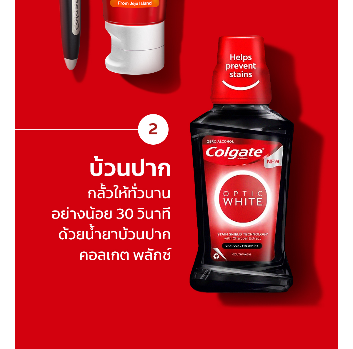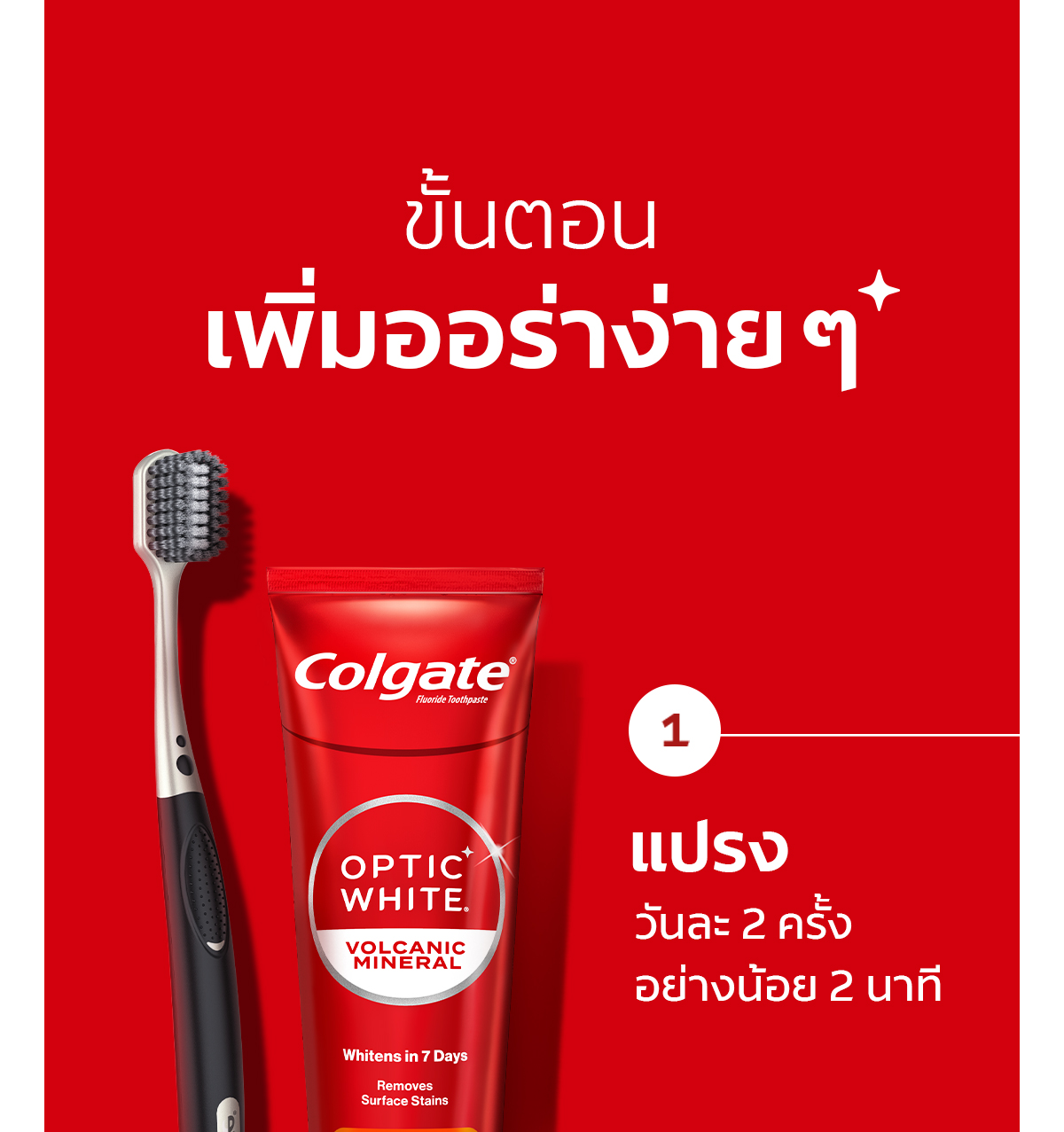 แปรงฟันด้วยคอลเกตอ๊อฟติคไวท์ หลังอาหารทุกมื้อและก่อนนอน