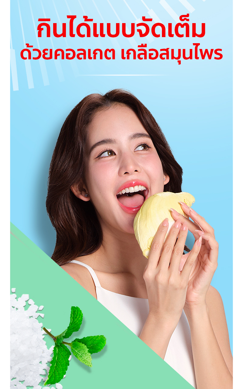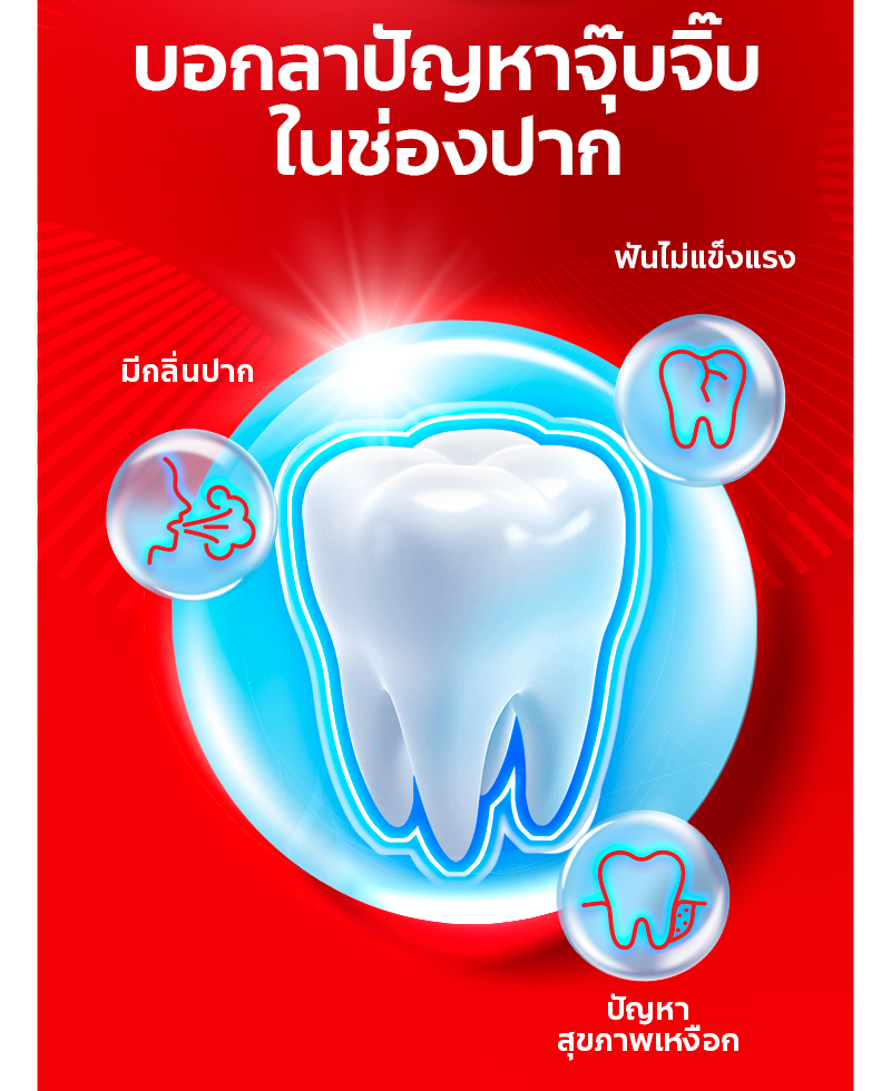 - ผสมฟลูออไรด์ พร้อมป้องกันฟันผุเพื่อสุขภาพเหงือกและฟันแข็งแรง