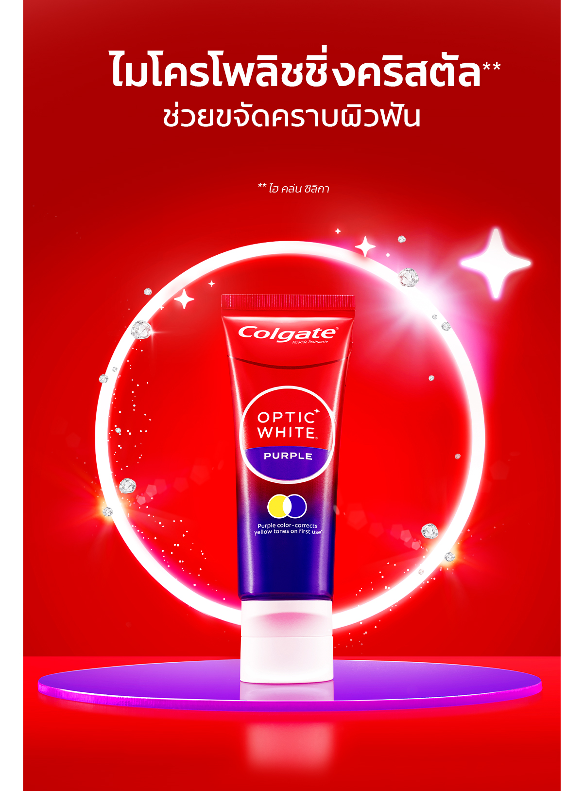 ยาสีฟัน คอลเกต อ๊อพติค ไวท์ เพอร์เพิล ปรับโทนสีเหลืองบนผิวฟันครั้งแรกที่ใช้ มีไมโครโพลิชชิ่ง คริสตัล ช่วยขจัดคราบเหลืองบนผิวฟัน เพื่อฟันดูขาวขึ้นใน 7 วัน และปลอดภัยต่อเคลือบฟัน มีส่วนผสมของฟลูออไรด์ช่วยป้องกันฟันผุ ปรับโทนสีเหลืองบนผิวฟันครั้งแรกที่ใช้ ฟันดูขาวขึ้นใน 7 วัน ด้วยไมโครโพลิชชิ่ง คริสตัล ปลอดภัยต่อเคลือบฟัน มีฟลูออไรด์ เพื่อผลลัพธ์ชั่วคราว ช่วยขจัดคราบผิวฟันเพื่อฟันขาวอย่างธรรมชาติ จากการศึกษาทางคลินิกในอาสาสมัครชาวโดมินิกัน จำนวน 140 คน อายุระหว่าง 18 ถึง 70 ปี ก ค 2560 ประเทศสาธารณรัฐโดมินิกัน เมื่อใช้ตามคำแนะนำ ผลลัพธ์ขึ้นอยู่กับแต่ละบุคคล ไฮคลีนซิลิกา เมื่อใช้ตามคำแนะนำ