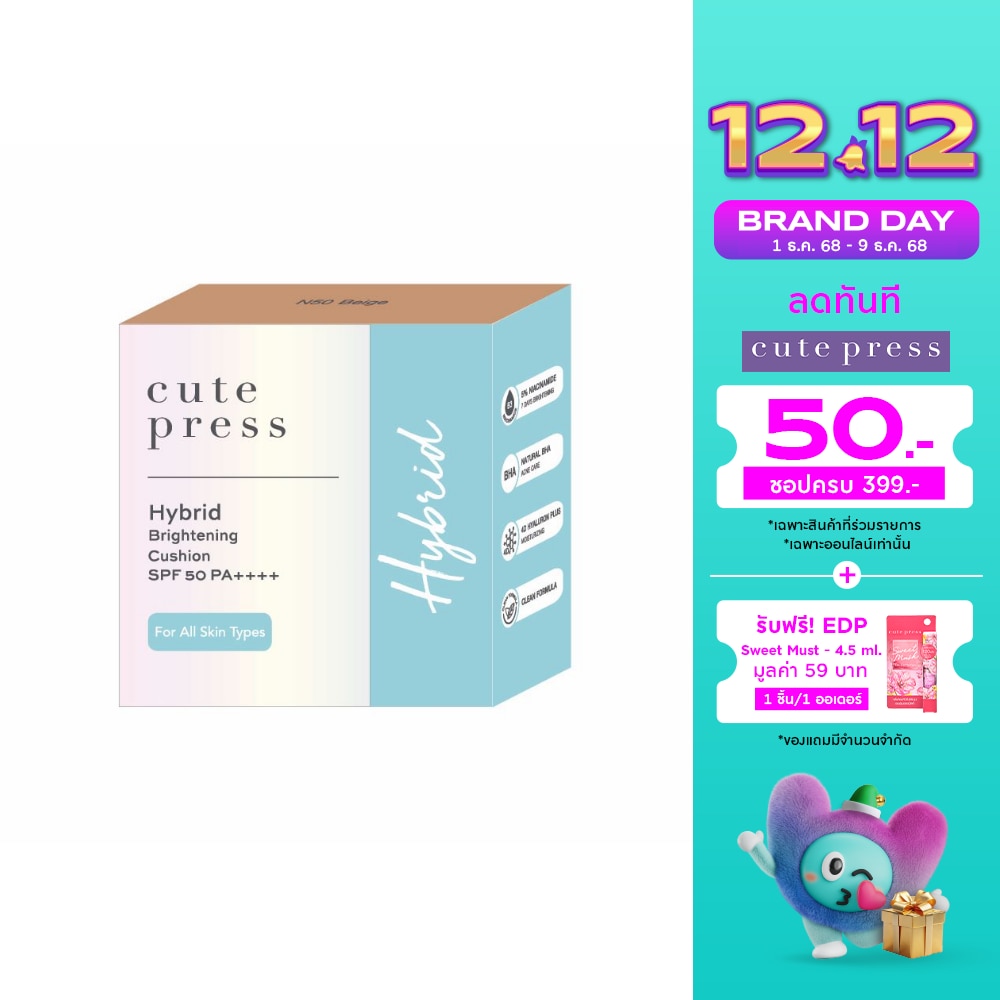 ครั้งแรกกับคุชชั่นไฮบริดสูตรคลีนที่ดีที่สุดจากคิวท์เพรส ที่นำ Niacinamide มากถึง 5 มาผสานเข้าในรองพื้นคุชชั่น ให้ผิวคุณสวยขึ้นได้จริงในทุกๆวันที่แต่งหน้า พิสูจน์แล้วว่าผิวแลดูกระจ่างใสขึ้นในเPยง 1 สัปดาห์แม้ไม่ทาสกินแคร์ ควบคุมความมันนาน 12 ชั่วโมง พร้อม Natural BHA ที่ช่วยลดโอกาสการเกิดสิว เนื้อสัมผัสบางเบาสบายผิวแต่ให้การปกปิดดีเยี่ยม สูตรติดทนนาน สีไม่ดรอปตลอดวัน กันน้ำกันเหงื่อ ยิ่งเหงื่อออกผิวยิ่งสวย และปกป้องผิวจากแสงแดดด้วยค่า SPF 50 PA++++ เพื่อตอบโจทย์คนเมืองร้อน ให้คุณเผยผิวสวยสุขภาพดีอย่างมั่นใจ
