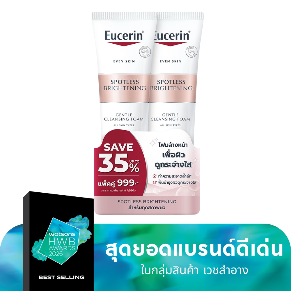 Eucerin โฟมล้างหน้ายูเซอริน สปอตเลส ไบรท์เทนนิ่ง เจนเทิล คลีนซิ่ง โฟม ช่วยทำความสะอาดผิวหน้า ขจัดเซลล์ผิวคล้ำเสีย ผสานสารไดโอแอคทีฟ และบิสซาโบลอลที่ช่วยฟื้นบำรุงให้ผิวกระจ่างใส ดูสุขภาพดี อ่อนโยน ปราศจากแอลกอฮอล์ เหมาะสำหรับผู้ที่มีปัญหาฝ้า กระ จุดด่างดำ ซึ่งเป็นนวัตกรรมใหม่ที่ช่วยทำความสะอาดผิวอย่างล้ำลึก ขจัดเซลล์ผิวคล้ำเสียสะสมและความมันส่วนเกินบนใบหน้า พร้อมช่วยลดเลือนฝ้า กระ จุดด่างดำ และเติมเต็มความชุ่มชื้นให้แก่ผิวหน้า ด้วยสารสำคัญต่างๆ สารไดโอแอคทีฟ สารจากธรรมชาติช่วยลดเลือนจุดด่างดำ ผิวหมองคล้ำ เพื่อให้ผิวเนียนใสอย่างเป็นธรรมชาติ ทั้งยังช่วยฟื้นบำรุงผิวให้แข็งแรงและมีสุขภาพที่ดีขึ้น สารบิสซาโบลอล สารสกัดจากดอกคาโมมายล์ มีคุณสมบัติช่วยลดอาการระคายเคือง เติมความชุ่มชื้นให้แก่ผิว พร้อมยับยั้งการเกิดเม็ดสีที่ทำให้เกิดจุดด่างดำ และช่วยให้ผิวกระจ่างใส