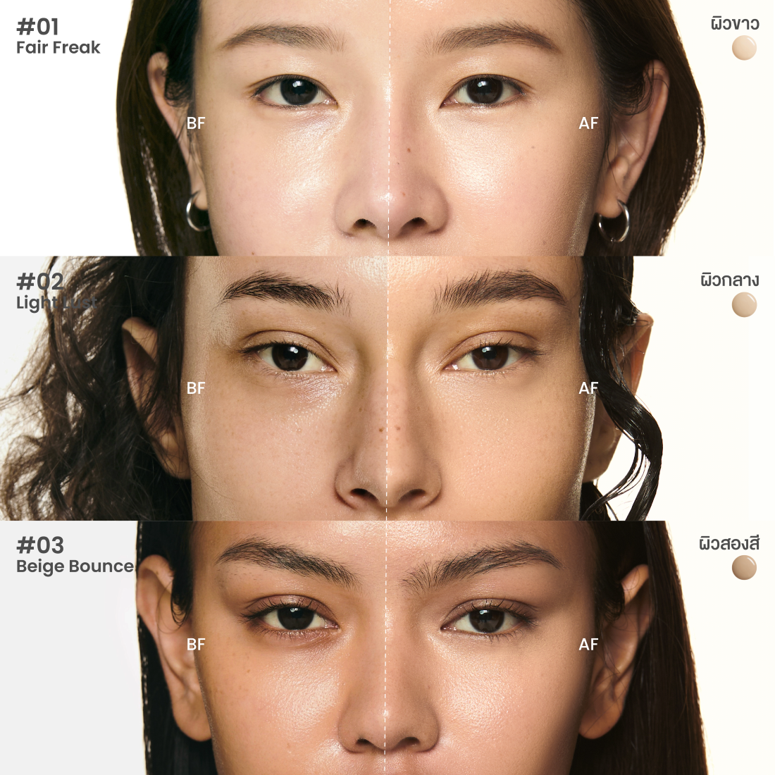 คอนซีลเลอร์เนื้อบางเบาแต่ปกปิดสูง ปกปิดรอยคล้ำใต้ตาและรอยตำหนิได้อย่างแนบเนียน ให้ผลลัพธ์ผิวเนียนเรียบสม่ำเสมอ ให้ลุคกึ่งแมตต์ที่ไม่ทำให้ผิวแห้ง ด้วยเนื้อสัมผัสเนียนนุ่มดุจกำมะหยี่ ไม่เป็นคราบหรือเป็นก้อน ช่วยเบลอรูขุมขนให้ดูเรียบเนียน เหมาะสำหรับทุกสภาพผิว แม้แต่ผิวแห้ง เนื่องจากเนื้อสัมผัสไม่ทำให้ผิวแห้ง ช่วยควบคุมความมันส่วนเกิน พร้อมคงความเปล่งปลั่งสุขภาพดี ช่วยบรรเทาอาการอักเสบและลดการเกิดสิว จึงปลอดภัยสำหรับผิวแพ้ง่ายหรือผิวที่เป็นสิวง่าย คอนซีลเลอร์สูตรบางเบาแต่ปกปิดขั้นสุด ซ่อนรอยคล้ำใต้ตาและจุดด่างดำได้อย่างแนบเนียน ด้วยฟินิชแบบกึ่งแมตต์ ไม่แห้งไป ไม่ฉ่ำไป เนื้อครีมเนียนนุ่ม เกลี่ยง่าย ไม่ตกร่องระหว่างวัน ติดทนนาน แนบผิวสนิท กันเหงื่อ เกาะผิวตลอดทั้งวัน