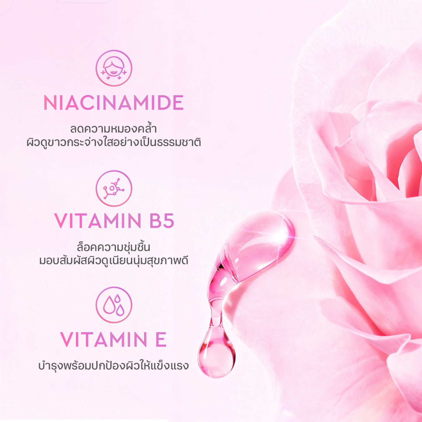 เซรั่มน้ำหอมบำรุงผิวกาย สัมผัสเนื้อบางเบา ซึมไว ไม่เหนียวเหนอะหนะ มอบความชุ่มชื้นยาวนาน สูตรผสานไนอะซินาไมด์ วิตามินบี 5 และ วิตามินอี ช่วยให้ผิวดูเนียนนุ่ม พร้อมทั้งเผยผิวดูขาวกระจ่างใสอย่างเป็นธรรมชาติ สัมผัสกลิ่นแนวฟรุ๊ตตี้จากส้มและดอกไม้ ปิดท้ายด้วยวนิลา ให้กลิ่นหอมสดชื่นยาวนานตลอดวัน เหมาะสำหรับใช้ทั้งตอนเช้าและเย็น ทาเซรั่มให้ทั่วผิวกาย นวดวนเบาๆ จนซึมเข้าสู่ผิว สามารถทาซ้ำได้ตามต้องการ เซรั่มน้ำหอมบำรุงผิวกาย สัมผัสเนื้อบางเบา ซึมไว ไม่เหนียวเหนอะหนะ มอบความชุ่มชื้นยาวนาน สูตรผสานไนอะซินาไมด์ วิตามินบี 5 และ วิตามินอี ช่วยให้ผิวดูเนียนนุ่ม พร้อมทั้งเผยผิวดูขาวกระจ่างใสอย่างเป็นธรรมชาติ สัมผัสกลิ่นแนวฟรุ๊ตตี้จากส้มและดอกไม้ ปิดท้ายด้วยวนิลา ให้กลิ่นหอมสดชื่นยาวนานตลอดวัน เหมาะสำหรับใช้ทั้งตอนเช้าและเย็น