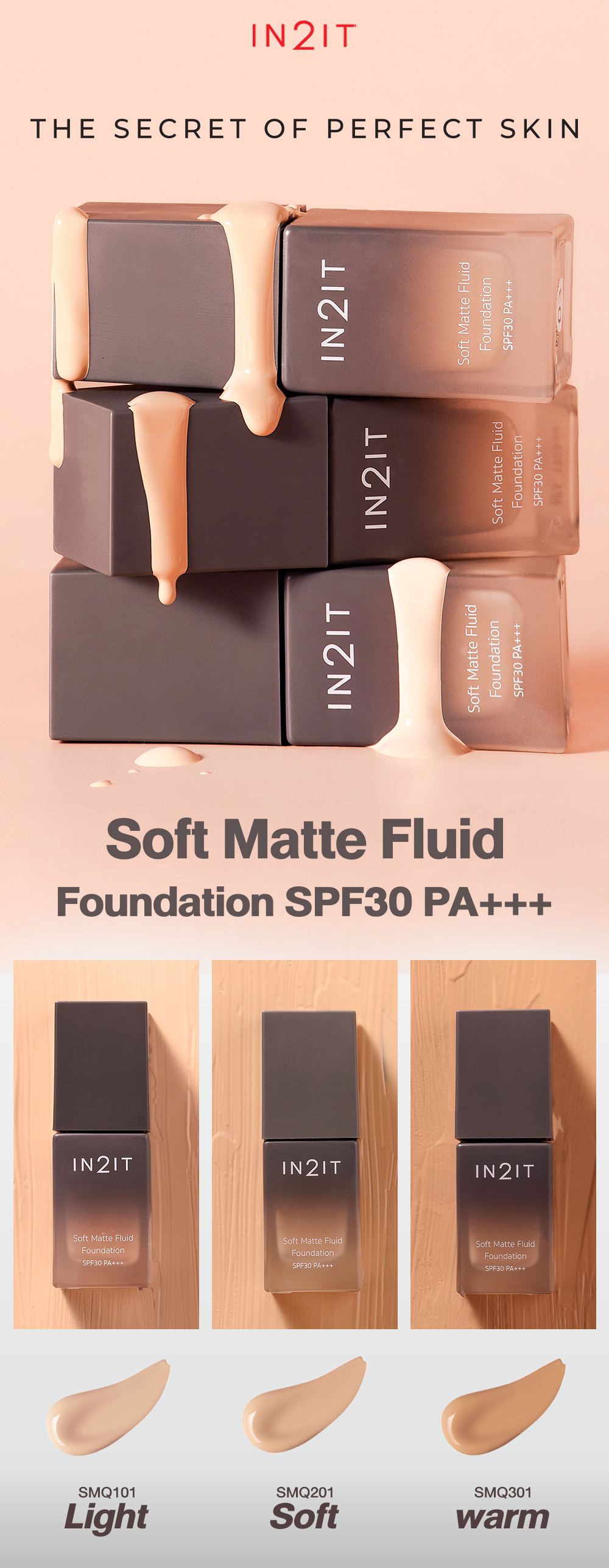 อินทูอิท รองพื้น ซอฟท์ แมตท์ ฟูอิด ฟาวน์เดชั่น SPF30 PA+++ 20มล. 301 วอร์ม