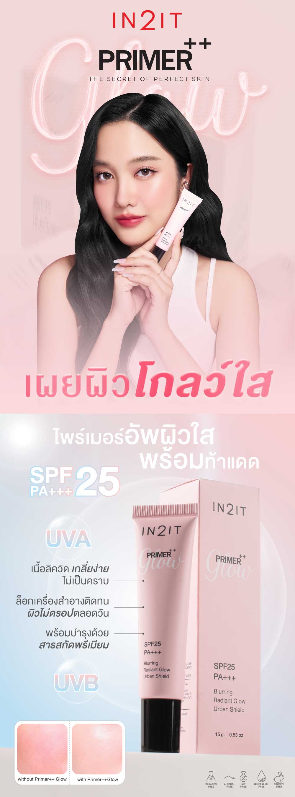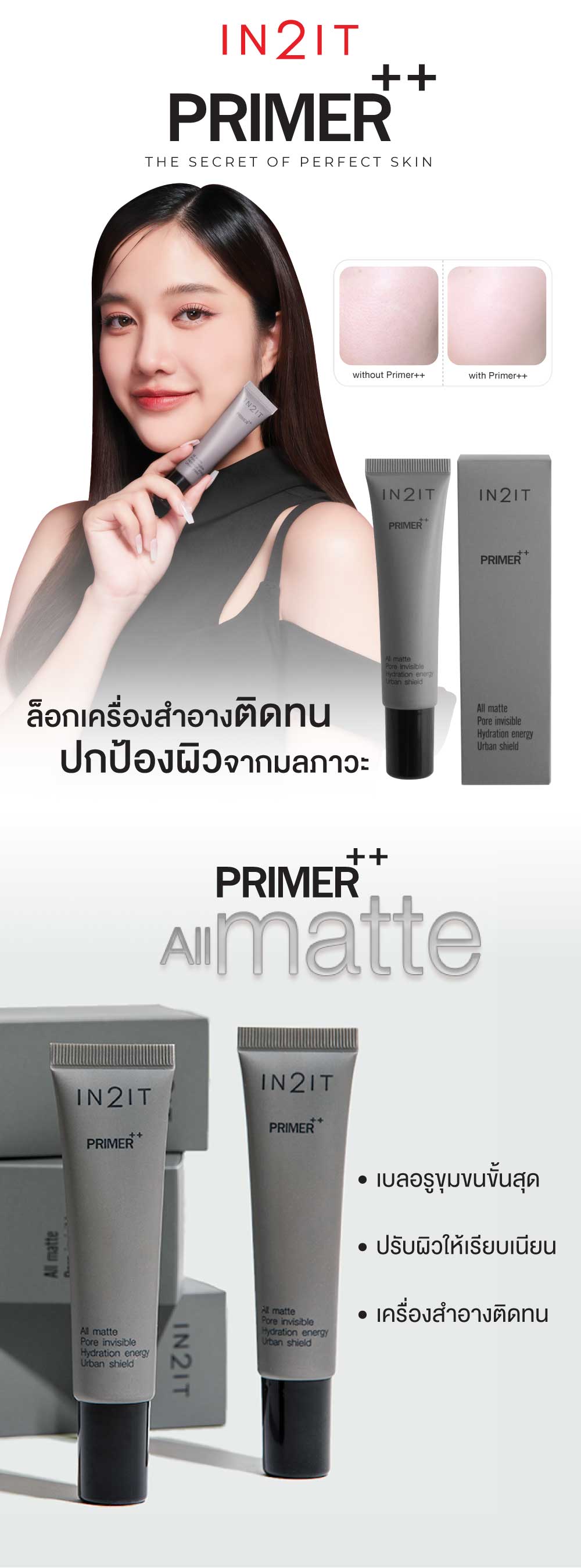 ความลับผิวเพอร์เฟ็คที่จะช่วยปรับผิวให้สมบูรณ์แบบ ปกป้อง และมอบความชุ่มชื้นให้กับผิวของคุณตั้งแต่เช้าจรดค่ำPrimer++ไพรเมอร์เนื้อนุ่มดุจแพรไหมที่ช่วยอำพรางรูขุมขน อุดมด้วยสารสกัดจากธรรมชาติชั้นเลิศ ช่วยให้ความชุ่มชื้น ปลอบประโลม และปกป้องผิวของคุณจากมลภาวะ พร้อมช่วยให้เมคอัพของคุณติดทนไร้ที่ติตลอดวันPrimer++ Glowมอบความกระจ่างใสให้ผิวของคุณด้วยเนื้อสัมผัสบางเบา ช่วยบำรุงผิว และช่วยอำพรางความไม่สมบูรณ์แบบ อุดมไปด้วยส่วนผสมของ Collagen, Niacinamide, Vitamin E, และ Aloe Vera มีค่า SPF 25 PA+++ และเทคโนโลยี Advanced Urban Shield ทำให้ผิวสดชื่นและมีสุขภาพดีตลอดทั้งวัน
