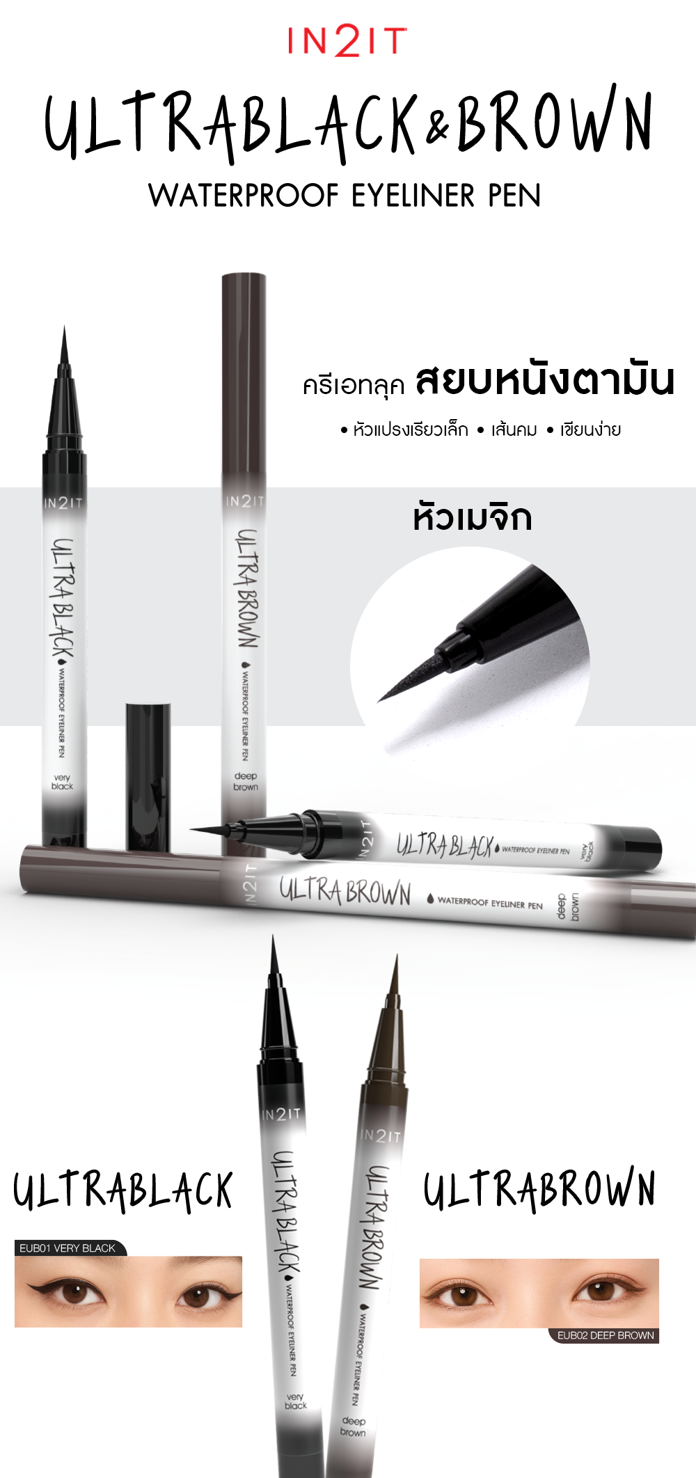 ปากกาเขียนขอบตา ปากกาขอบตาขายดี ปากกาเขียนขอบตาใช้ดี ปากกาเขียนขอบตากันน้ำ ปากกาเขียนขอบตาไม่เลอะ ปากกาเขียนขอบตาไม่แพนด้า ปากกาเขียนขอบตาไม่แพนด้า ปากกาเขียนขอบตาสีดำสนิท เขียนง่าย เส้นบางคมชัด ขนาดพกพา เหมาะกับทุกสถานการณ์ เทคโนโลยีเติมหมึกตลอดเวลาอย่างต่อเนื่อง เส้นเรียวเล็กเขียนได้สนิทชิดขอบตา ช่วยให้ตาดูกลมโต หมึกไหลลื่น สีไม่จางระหว่าวัน เนื้อฟิล์ม เขียนง่ายแนบสนิทติดทนนาน ดินสอเขียนขอบตาเนื้อเจล เขียนง่าย นุ่มลื่น เส้นเรียบเนียน เม็ดสีแน่น เด่นชัด ติดทนนาน และกันน้ำ ล้างออกง่ายด้วย เพียงแค่ใช้ อายเมคอัพรีมูฟเวอร์