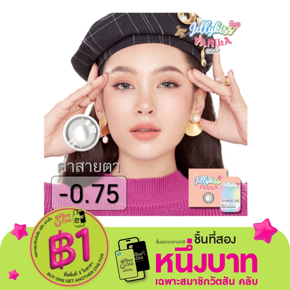 เจลลี่คิส วนิลา เกร์ย ชนิดรายเดือน ค่าสายตา -0.75 (บรรจุ 2ชิ้นต่อกล่อง)
