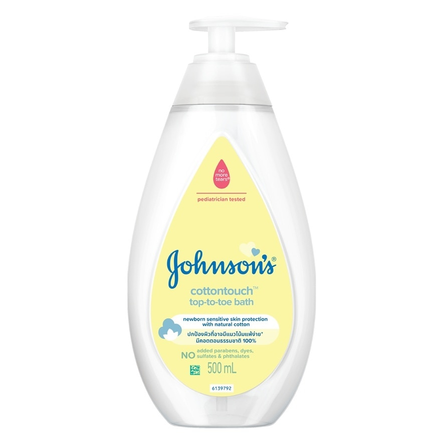 จอห์นสัน คอตตอนทัช ท็อปทูโท บาธ - สบู่เหลวอาบน้ำและสระผม -มีส่วนผสมของคอตตอนบริสุทธิ์ จากธรรมชาติ -พัฒนาเพื่อผิวบอบบาง ของเด็กแรกเกิด -ช่วยให้ผิวรู้สึกนุ่ม และสะอาดสบาย -ล้างออกง่าย ไม่ทิ้งสารตกค้าง
