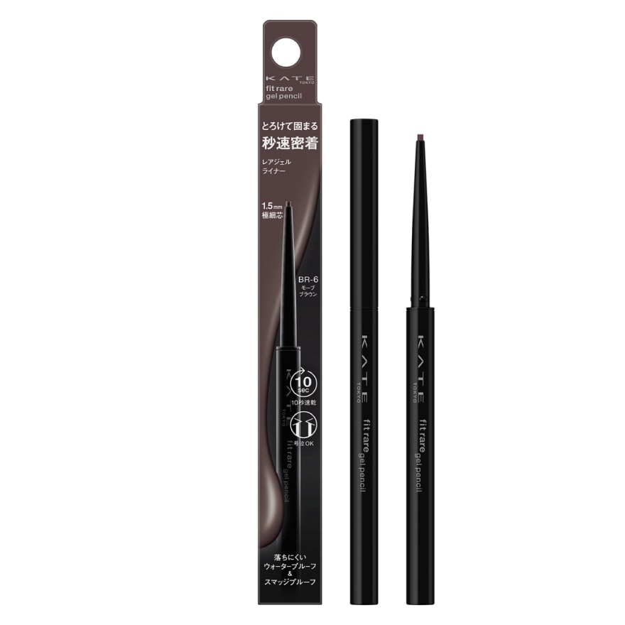 Kate Fit Rare Gel Pencil N Br-6 0.08 กรัม อายไลเนอร์เนื้อเจลแห้งไวภายใน 10 วินาที โดยจะหลอมละลายเมื่อสัมผัสผิว ติดทนนาน ไม่เลอะ ดราม่าแค่ไหนก็เอาอยู่ ด้วยดินสอปลายเรียวเล็กพิเศษ 1.5 มม. กันเหงื่อ กันน้ำ และน้ำตา ไม่เลอะง่าย ทนต่อความมัน และการเสียดสี 1. ปลายเรียวเล็ก 1.5 มม. ทำให้เขียนง่าย และบิดขึ้นได้ง่าย 2. Waterproof กันเหงื่อ กันน้ำ และน้ำตา 3. Smudge Proof ไม่เลอะง่าย ทนต่อความมัน และการเสียดสี แห้งเร็วและติดทนยาวนานกว่า โดยมีส่วนผสมใหม่ ไอโซโดดีเคน ถูกนำมาให้เพื่อให้ได้คุณสมบัติแห้งเร็ว ติดเปลือกตาเพียง 10 วินาที และติดทนยาวนาน ทนทานไม่เลอะแม้ผ่านการร้องไห้อย่างหนัก ไม่เปื้อนหรือเลอะเลือนง่าย แม้จากการถู