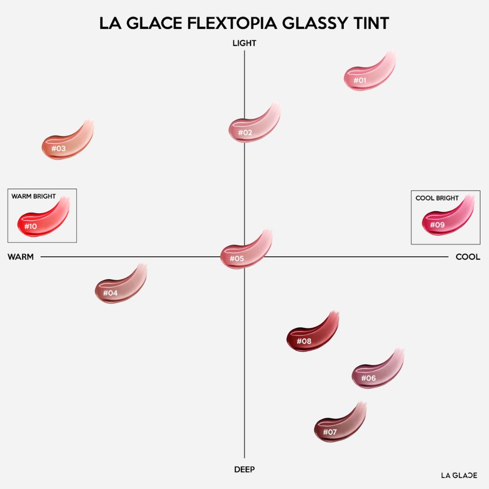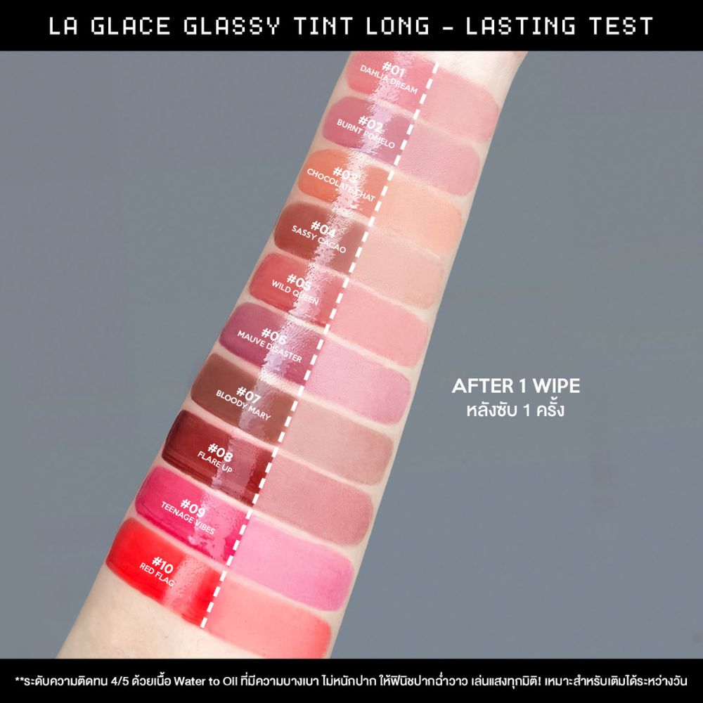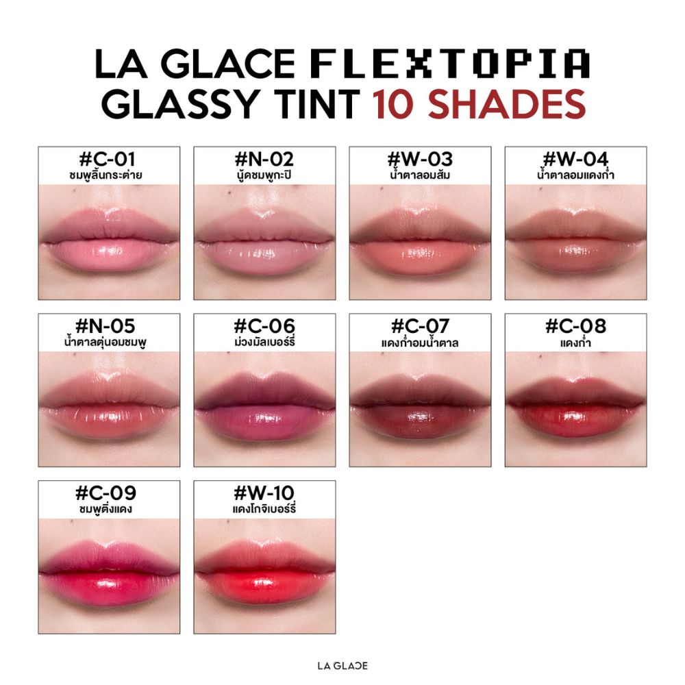 ใหม่ ลา กลาส เฟล็กซ์โทเปีย กลาสซี่ ทินท์ รวมสีขายดี จากลิปไอติมและฉดสีใหม่ รวมกัน 10 เฉดฉ่ำจนต้องสะดุ้ง พร้อมล็อกความชุ่มชื้น บำรุงปากให้เนียนนุ่ม อิ่มฟู ไม่แห้งกรัง ฟินิชปากกระจก ฉ่ำสะใจ เนื้อบางเบาแต่เม็ดสีชัด ติดทนนาน ทิ้งสเตนสีไม่เพี้ยน เติมได้ ไม่ทำให้ปากแห้งกรัง มาพร้อม ลิปรีมูฟเวอร์ สเตนแน่นแค่ไหนเอาอยู่ 01 ชมพูลิ้นกระต่าย 02 นู้ดชมพูกะปิ 03 น้ำตาลอมส้ม 04 น้ำตาลอมแดงก่ำ 05 น้ำตาลตุ่นอมชมพู 06 ม่วงมัลเบอร์รี่ 07 แดงก่ำอมน้ำตาล 08 แดงก่ำ 09 ชมพูติ่งแดง 10 แดงโกจิเบอร์รี่ พูดดังๆ ไปเลยพวกที่คิดมากข้างหลัง ฉันกำลังอวดของใหม่ใช่ไหมล่ะ ใช่เลย ลิปทินท์ La Glace Flextopia Glassy Tint คอลเลคชั่นรวมสีขายดีและสีใหม่ล่าสุด 10 เฉดสีเงาวาวสุดๆ ที่จะทำให้คุณต้องเหลียวมองซ้ำ ฉันกลัวว่านี่แหละคือลิปทินท์ที่ใช่ เนื้อสัมผัสเงาวาวดุจกระจก เนื้อสัมผัสแบบน้ำเปลี่ยนเป็นน้ำมัน บางเบา สีสันสดใส ไม่หนักริมฝีปาก ติดทนนาน สีไม่เพี้ยน ทาซ้ำได้ ไม่ทำให้ริมฝีปากแห้งแตก ราคา 289 บาท 4 กรัม จากราคาปกติ 329 บาท