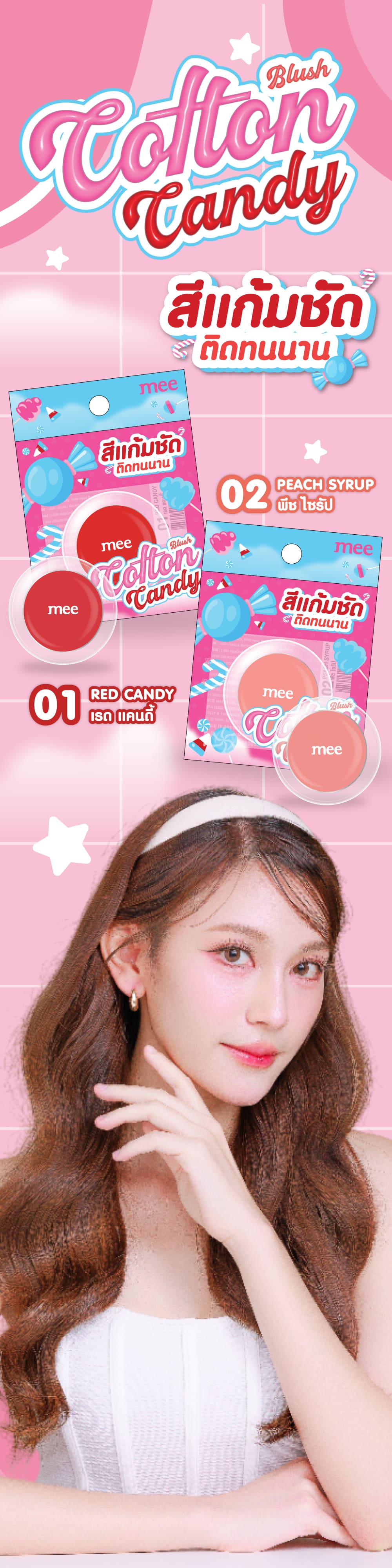 มี คอตตอน แคนดี้ ครีมบลัชที่ออกแบบมาเพื่อเติมความสดใส เนื้อสัมผัสนุ่มนวล เกลี่ยง่าย ให้ความบางเบาแนบเนียนไปกับผิวโดยไม่ทิ้งความมันและไม่ทำให้รู้สึกหนักหน้า มาพร้อมเม็ดสีที่แน่น ชัด และติดทนเพียงแต้มแค่เล็กน้อยก็สามารถแต่งเติมสีสันได้ทั่วทั้งแก้ม มาพร้อมกับแพ็กเกจตลับเล็กกระทัดรัด พกพาสะดวก 01 Sweet candy ครีมบลัชโทนชมพูหวานละมุน หอมหวานเหมือนลูกอม ให้ลุคคุณหนูแสนซน ดูน่ารักสดใส 02 Peach Syrup ครีมบลัชโทนส้มพีชที่หรูหรา ให้ความเป็นผู้ดีและความเป็นธรรมชาติ มาพร้อมกับกลิ่นหอมของลูกพีชที่สดชื่น สร้างลุคสวยแบบสบาย ๆ ที่มีเสน่ห์