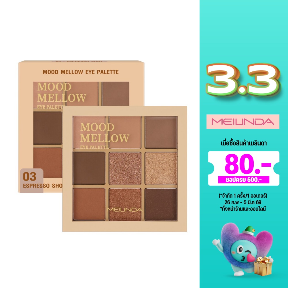 MEILINDA Mood Mellow Eye Palette 5.85g - 03 Espresso Shot เมลินดา มู้ด เมลโลว์อาย 5.85ก - 03 เอสเปรสโซ่ ช็อต อายแชโดว์พาเลทท์ที่จะแต่งแต้มดวงตาให้เปล่งประกาย สวยโดดเด่นได้ในทุกวัน มาพร้อม 9 เนื้อสัมผัส สีชัด พิกเมนต์แน่น เนื้อสัมผัสเนียนละเอียด กลิตเตอร์สีเด่นชัด เปล่งประกายโดดเด่นในทุกมุมมอง มีขนาดพกพา มาพร้อมโทนสีที่เหมาะสำหรับทุกโอกาสและทุกๆสีผิว ให้คุณสามารถสนุกกับการมิกซ์ แอนด์ แมช ลุค สวยได้อย่างเป็นธรรมชาติ อายแชโดว์พาเลตต์ขนาดพกพา มาพร้อมโทนสีที่เหมาะสำหรับทุกโอกาส ที่ให้คุณสามารถมิกซ์แอนด์แมชลุคสวยได้อย่างที่ต้องการใช้ตกแต่งบริเวณรอบดวงตา ปริมาณสุทธิ 5.85กรัม วิธีการเก็บ MEILINDA Mood Mellow Eye Palette5.85g - 03 Espresso Shot เมลินดา มู้ด เมลโลว์อาย5.85ก - 03 เอสเปรสโซ่ ช็อต เมื่อใช้เสร็จควรปิดฝาให้สนิท เก็บรักษาในอุณหภูมิห้อง