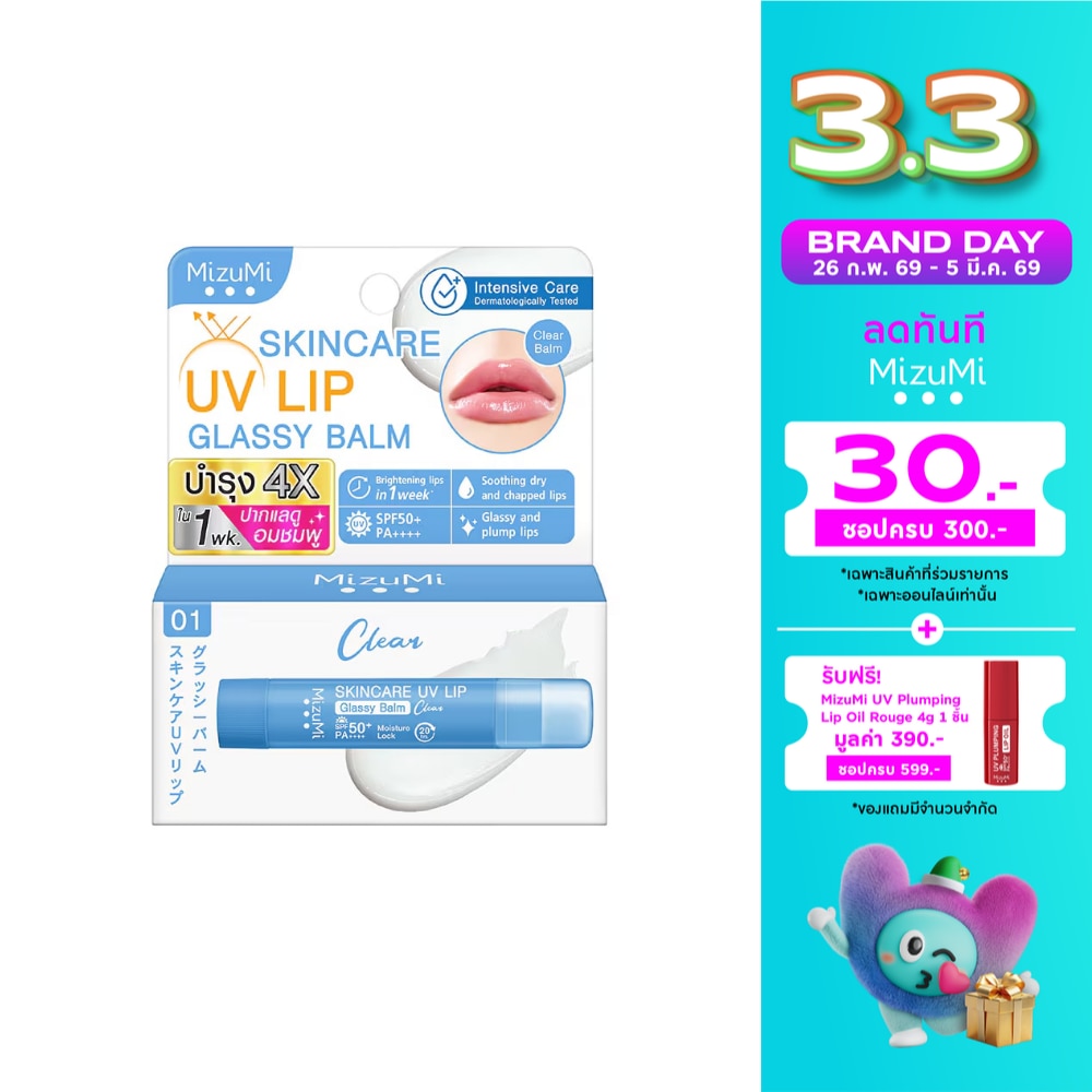มิซึมิ สกินแคร์ ยูวี ลิป กลาสซี่ บาล์ม เคลียร์ 3.5 กรัม