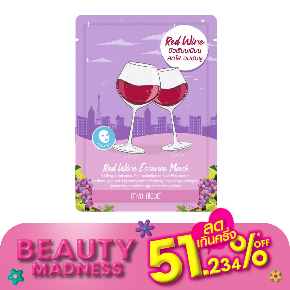 มิว-นิค เรด ไวน์ เอสเซ้นส์ มาสก์ 1 แผ่น มาสก์หน้า ผิวเรียบเนียน สดใส อมชมพู