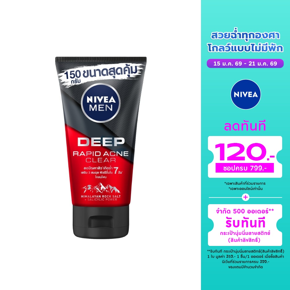 นีเวีย เม็น มัดโฟม ดีพ ราพิด แอคเน่ 150 กรัม ผู้ชาย โฟม สครับ ล้างหน้า