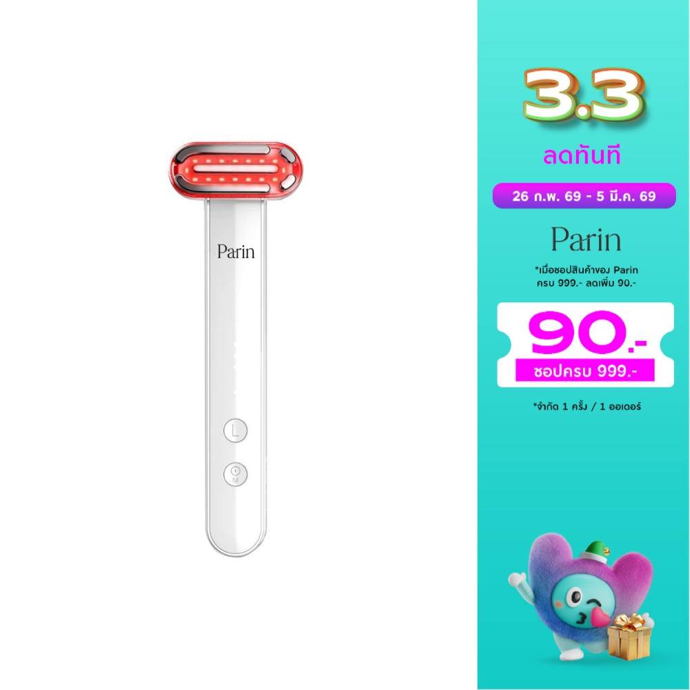 Parin REYOUTH เครื่องนวดยกกระชับ และบำบัดผิว 2 โหมดในเครื่องเดียว EMS + SONIC VIBRATION และ แสงบำบัดผิวสีแดง โหมดสีน้ำเงิน (BLUE MODE) EMS SOOTHINGส่งคลื่นไฟฟ้าอ่อน ๆ เพื่อคลายความตึงเครียดของกล้ามเนื้อ ช่วยให้ผิวผ่อนคลาย ลดการอักเสบและความระคายเคืองด้วย RED LIGHT LED THERAPY ช่วยให้ผิวเต่งตึง บูสต์คอลลาเจน และ อิ่มฟู เมื่อใช้คู่กับ Skincare จะช่วยให้ เพิ่มประสิทธิภาพของสกินแคร์ได้ดีขึ้น ไม่ทำให้สกินแคร์กองอยู่บนผิวโหมดสีแดง (RED MODE) EMS ACTIVATION กระตุ้นให้ผิว พร้อมรับสกินแคร์ หัวนวด RED LIGHT LED ส่งคลื่นไฟฟ้าความถี่ต่ำเพื่อกระตุ้นผิวและกล้ามเนื้อใต้ผิวหนัง ช่วยกระตุ้นการไหลเวียนโลหิตและเตรียมผิวให้พร้อมดูดซึมสกินแคร์ได้ดีขึ้น โหมดสีม่วง (PURPLE MODE) EMS CONTRACTIONใช้พลังงานไฟฟ้าความเข้มข้นสูงเพื่อกระตุ้นการหดตัวของกล้ามเนื้อ ช่วยยกกระชับและปรับรูปหน้าให้ได้สัดส่วนมากขึ้น เหมาะสำหรับใช้นวดยกกระชับ บริเวณที่ต้องการเช่น กรอบหน้า แก้ม เหนียง คอ หรือส่วนที่หย่อนคล้อย และ ต้องการนวดให้กระชับ ผ่อนคลาย และ กระตุ้นคอลลาเจนเหมาะสำหรับใช้กับสกินแคร์ DAILY ROUTINE หรือควบคู่เจลยกกระชับ